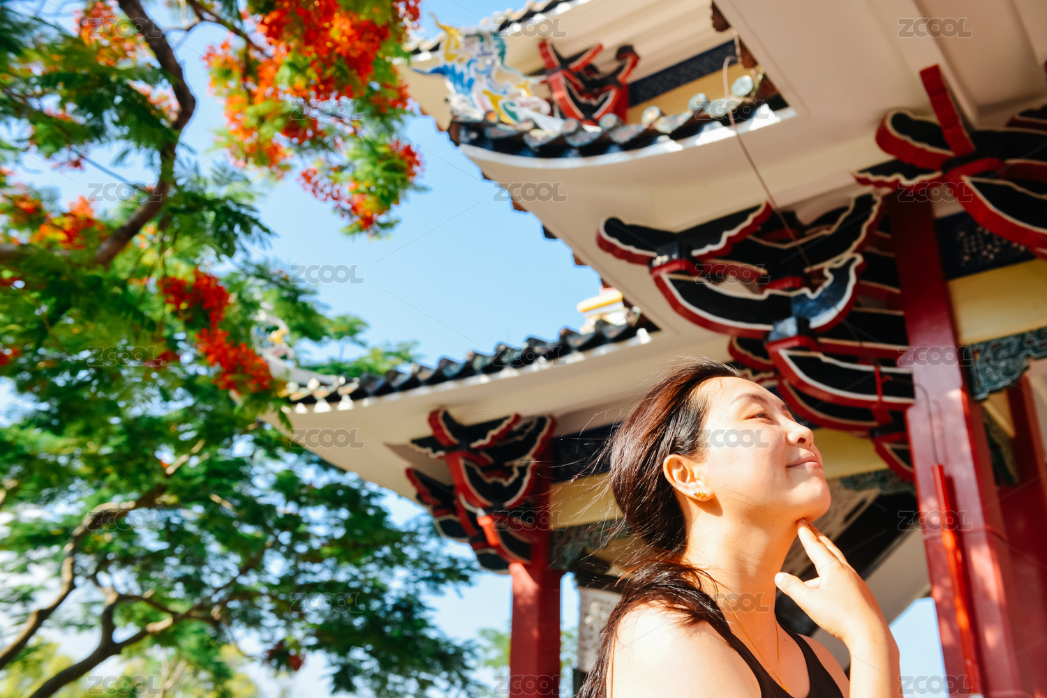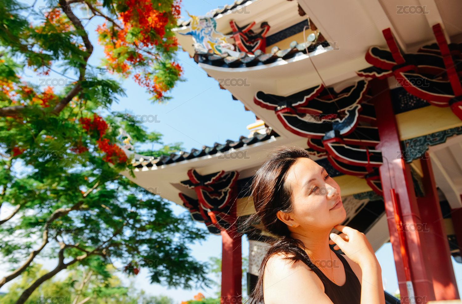 6月初夏,亞裔女性在廈門集美嘉庚公園游玩