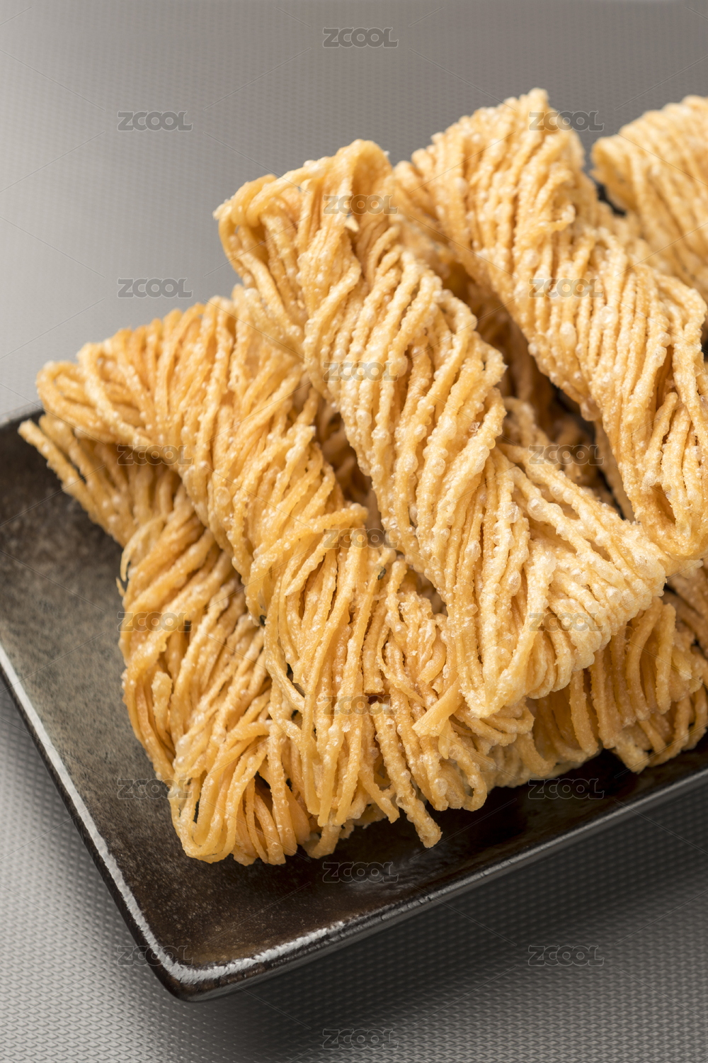 特色小吃一盤油炸馓子擺放在桌面上特寫