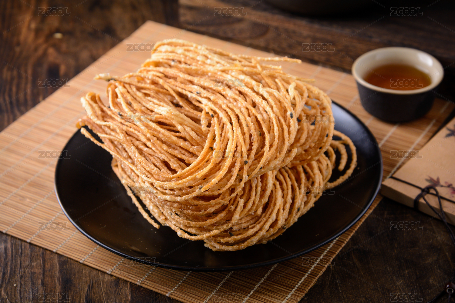 復(fù)古中式木桌上的油炸馓子
