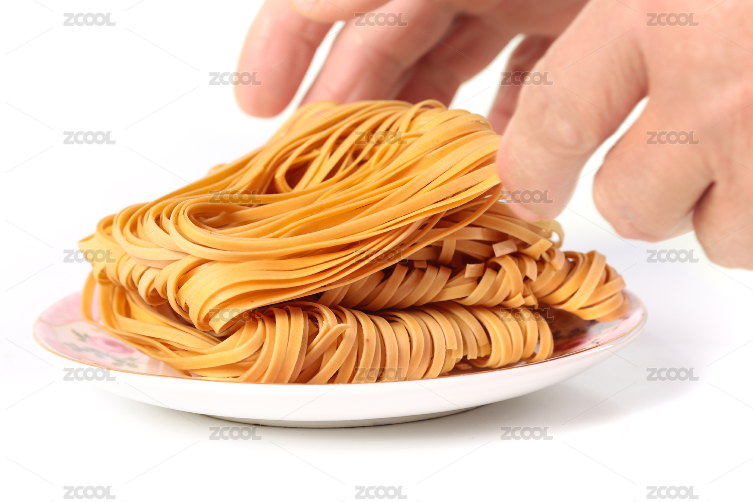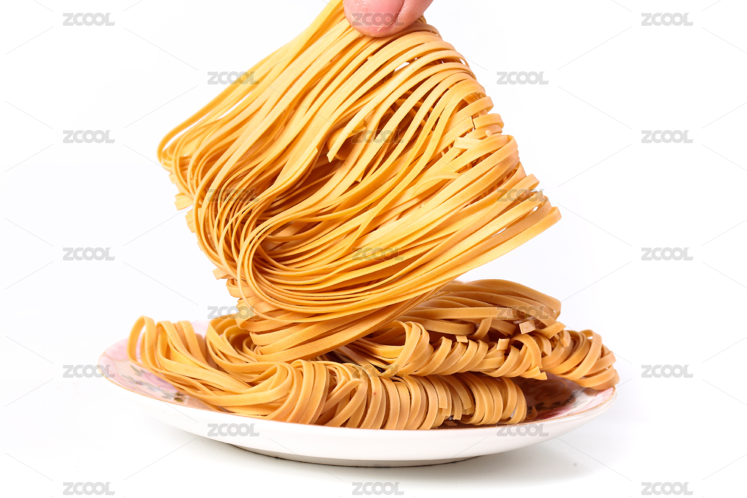 白底上放著一盤炸馓子和手上拿著一塊馓子