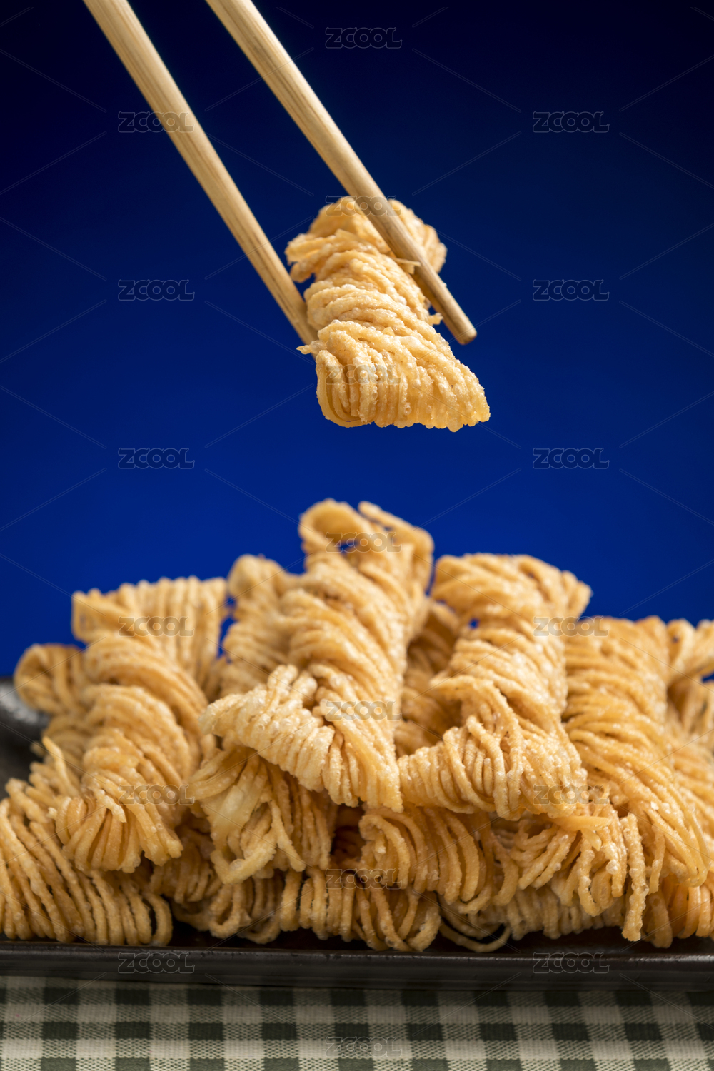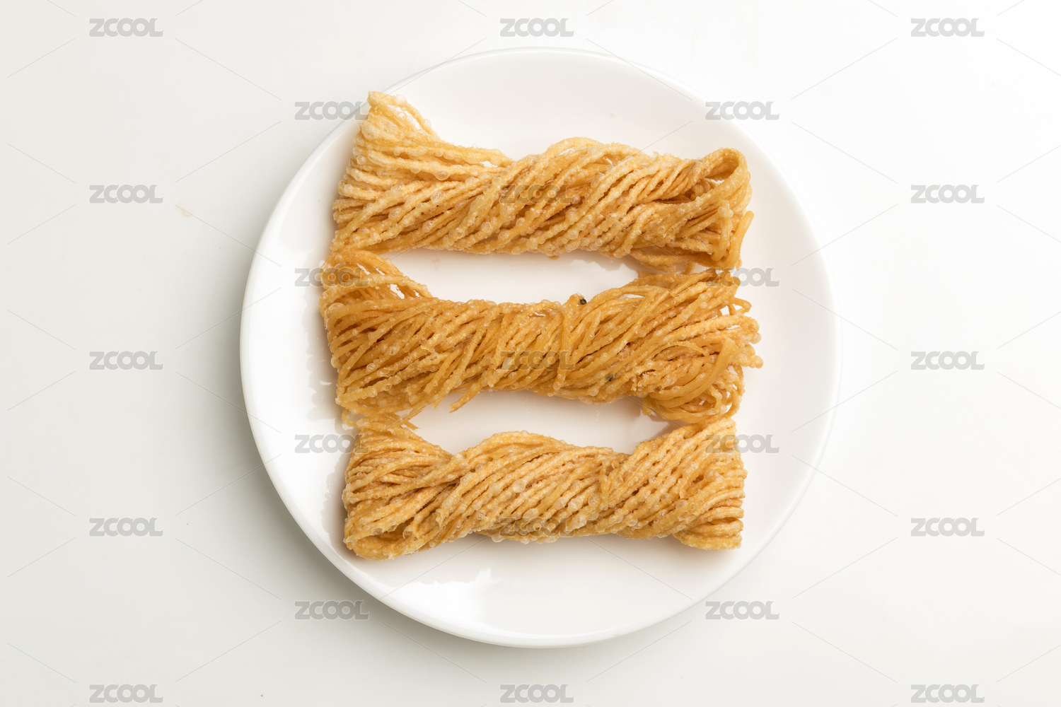 白底上放著一塊油炸馓子