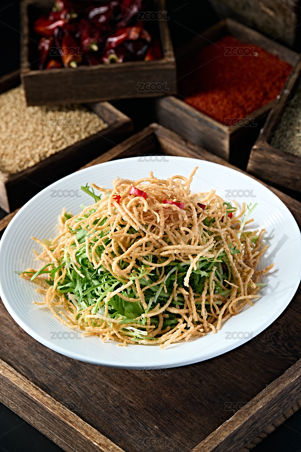 油炸馓子絲涼拌苦菊