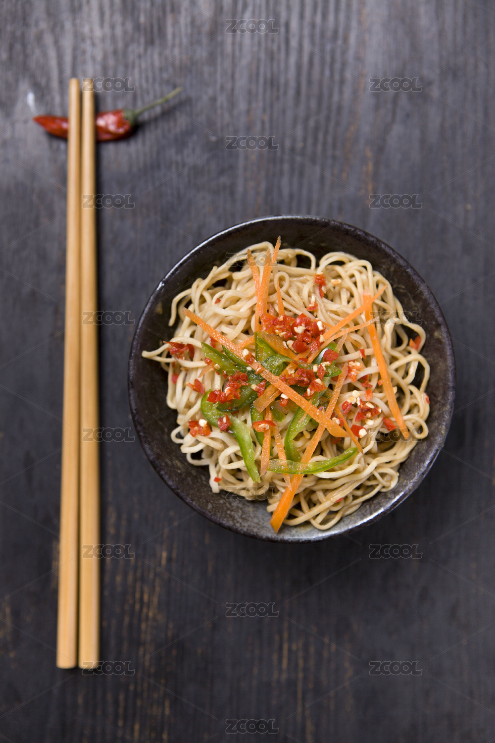 放在深色餐桌上的一碗中國(guó)傳統(tǒng)家常拌面 — 沙拉拌面