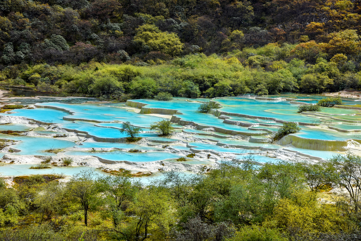 四川阿壩黃龍景區(qū)鈣化池瀑布