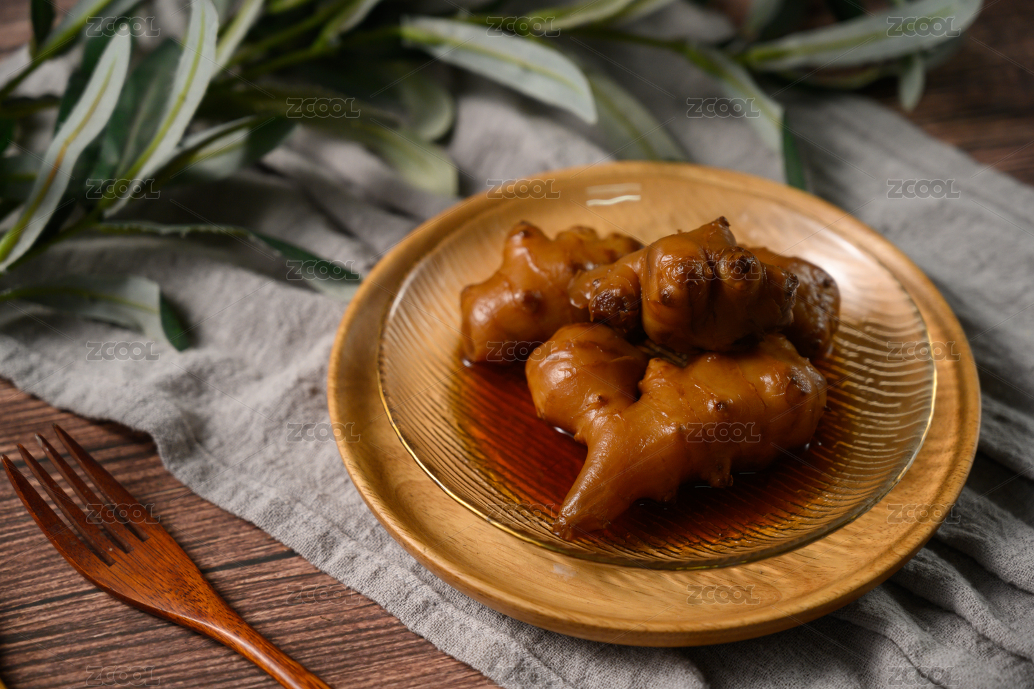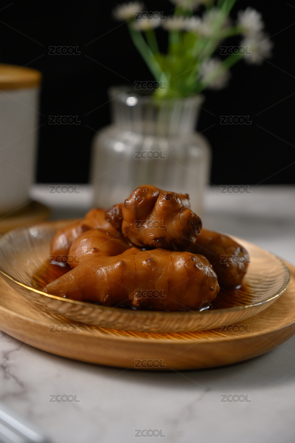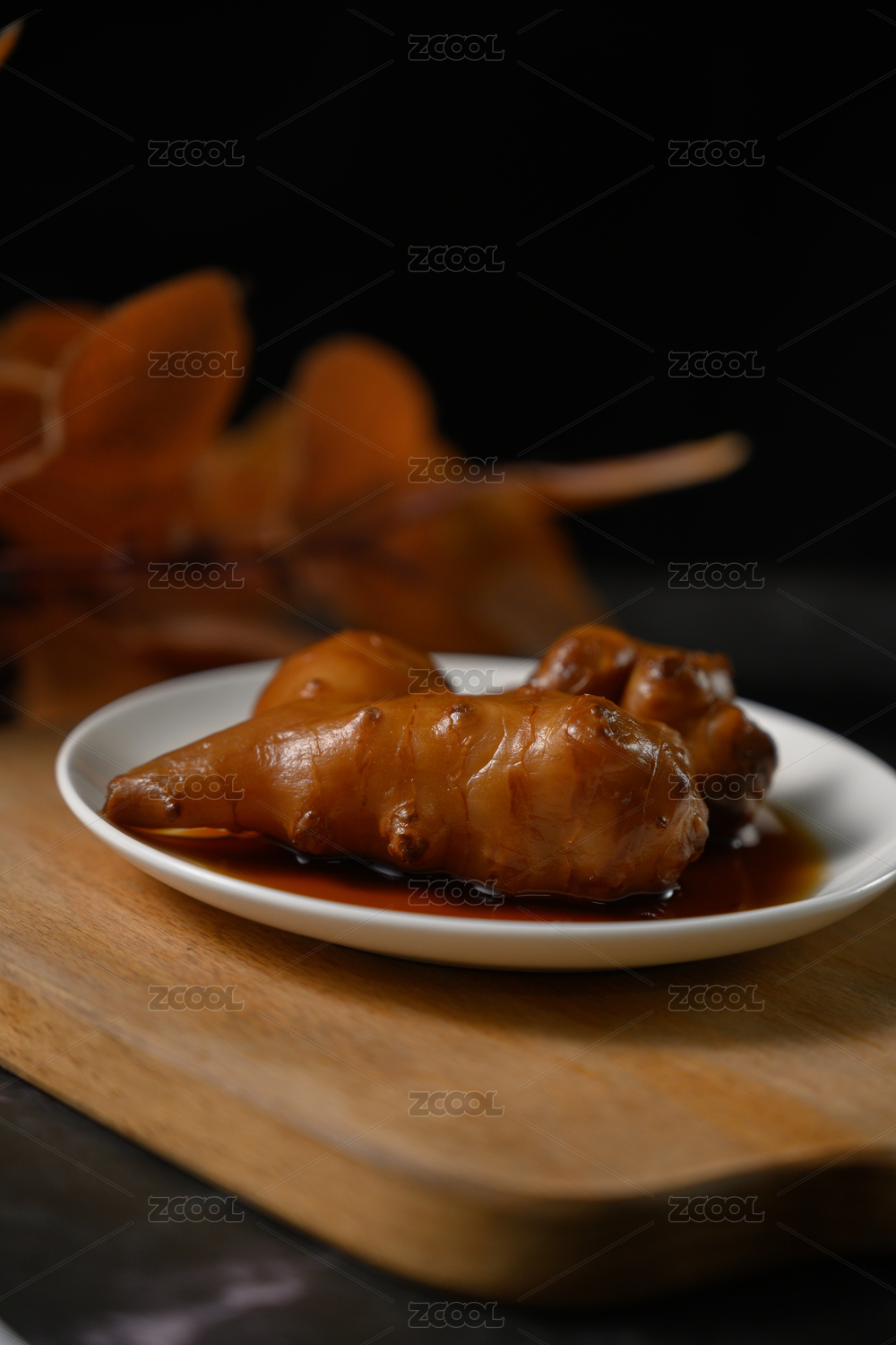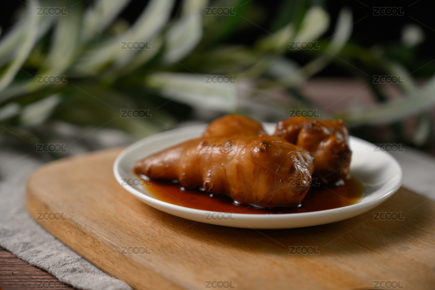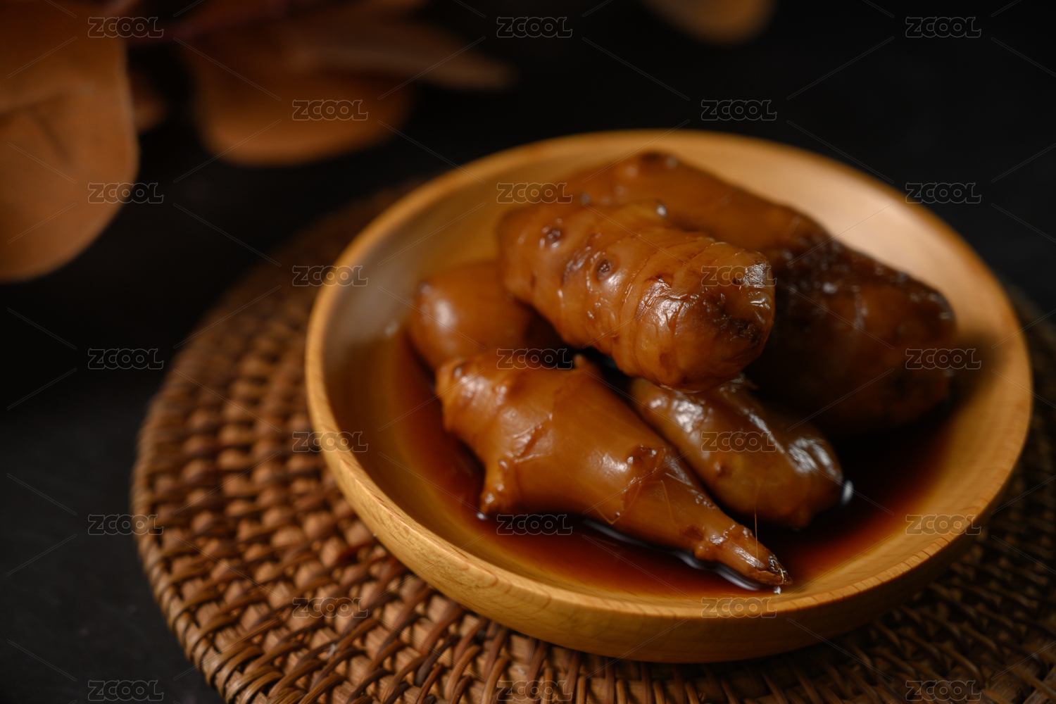 桌面上的盤子里的美味可口的醬洋子姜