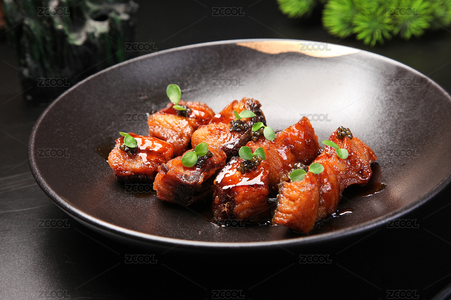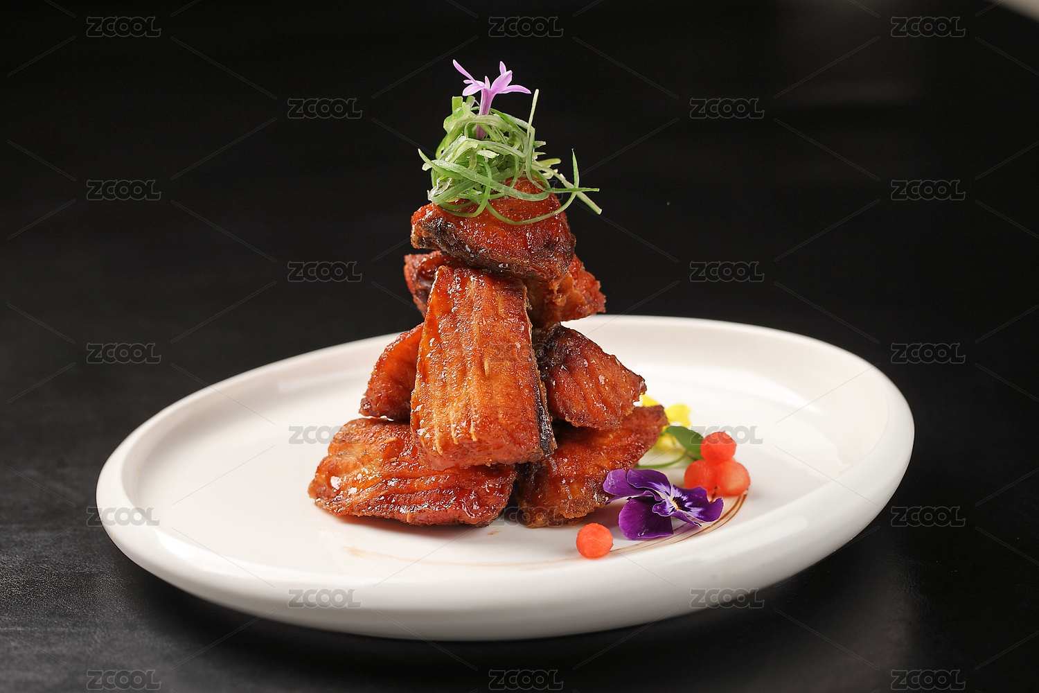 黑背景傳統(tǒng)本幫菜一盤上海熏魚