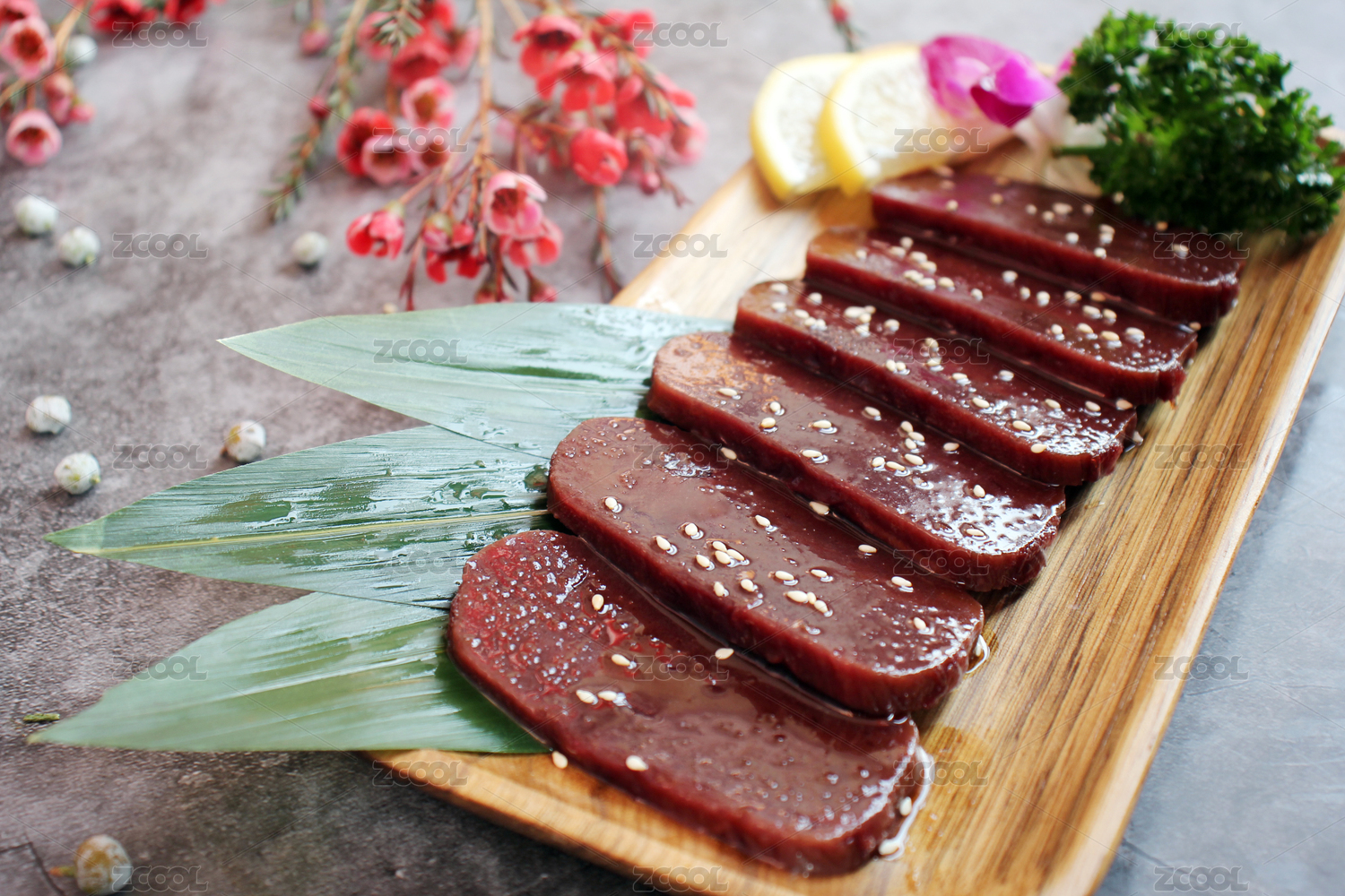 一盤生鮮牛肉肝放在桌子上