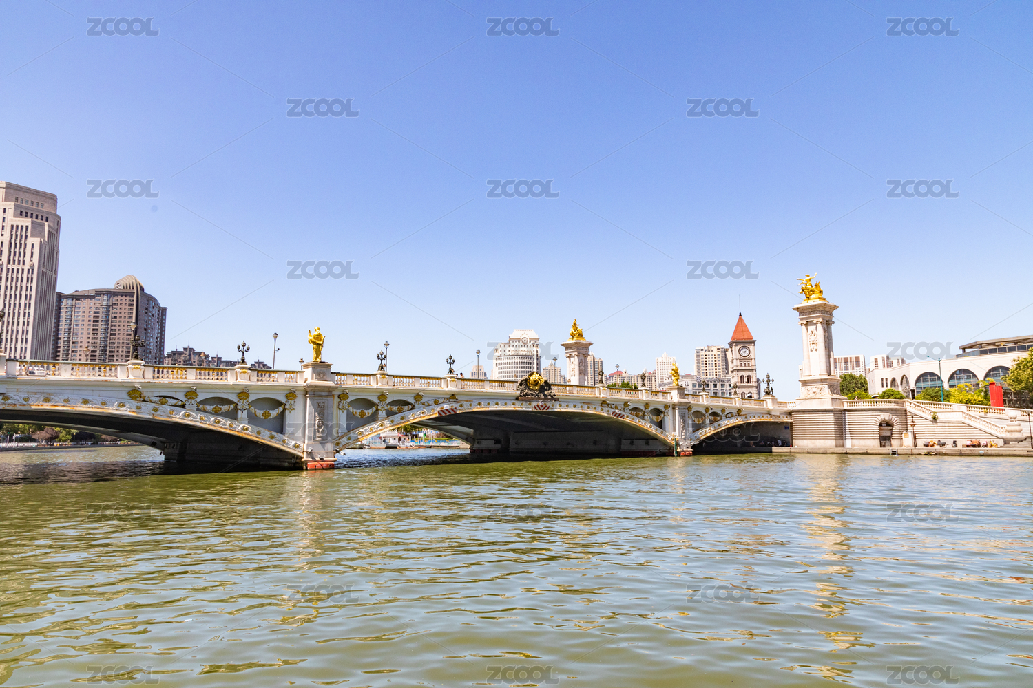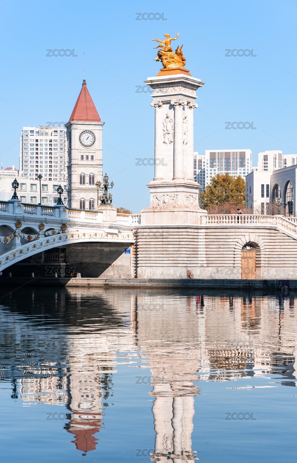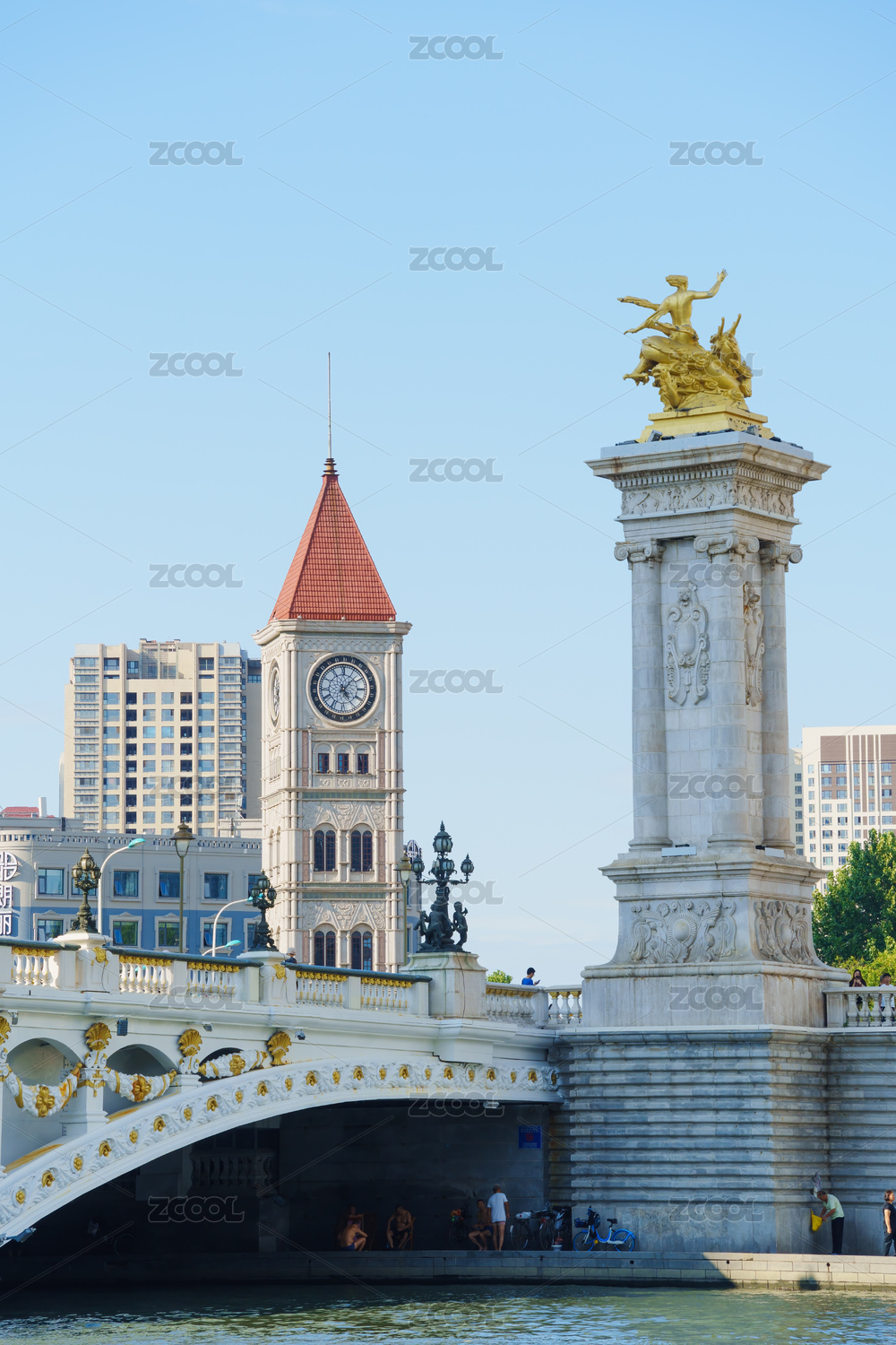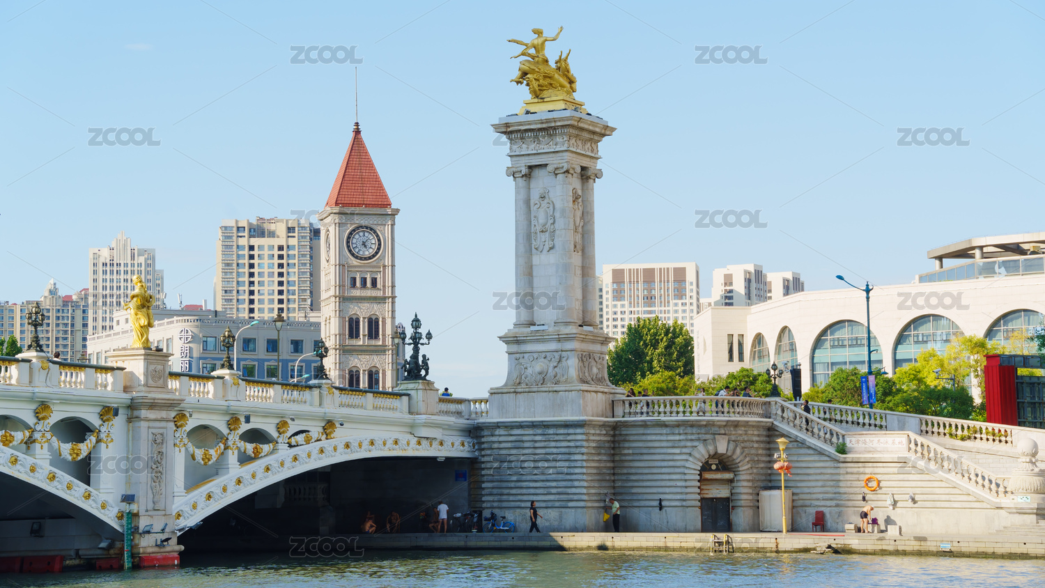 天津市海河沿岸,意大利風(fēng)情區(qū)北安橋與教堂