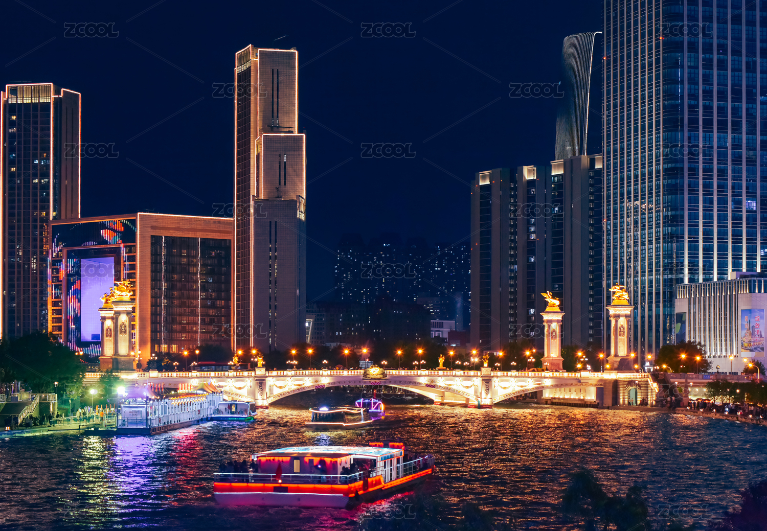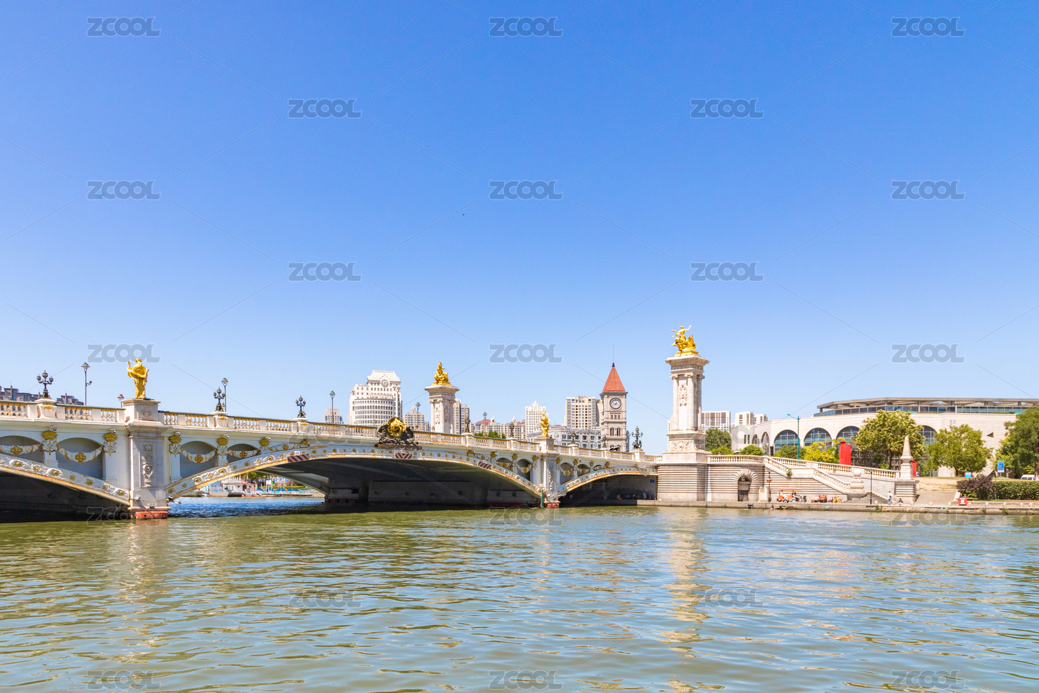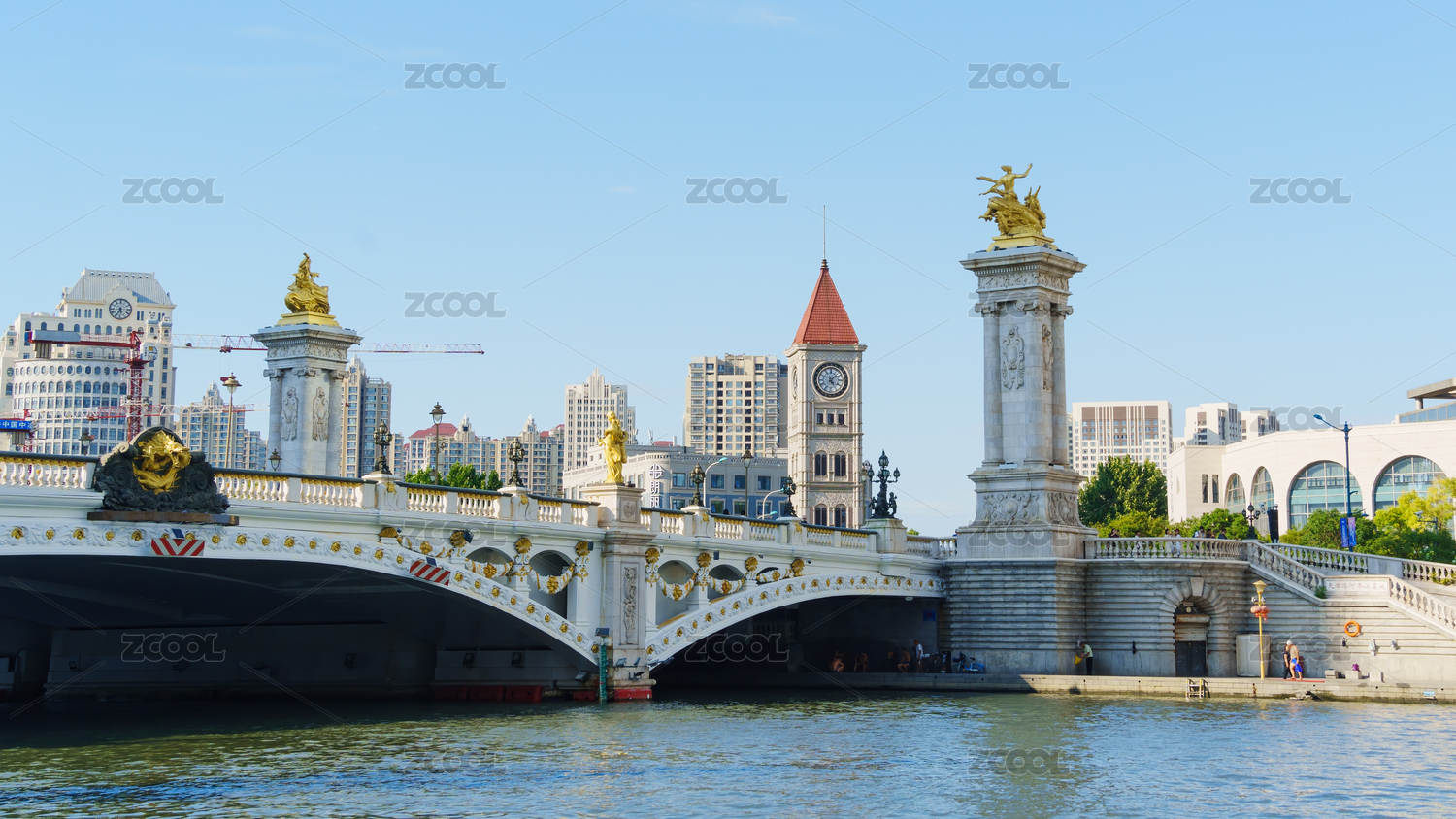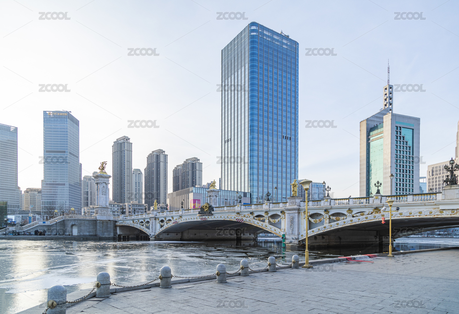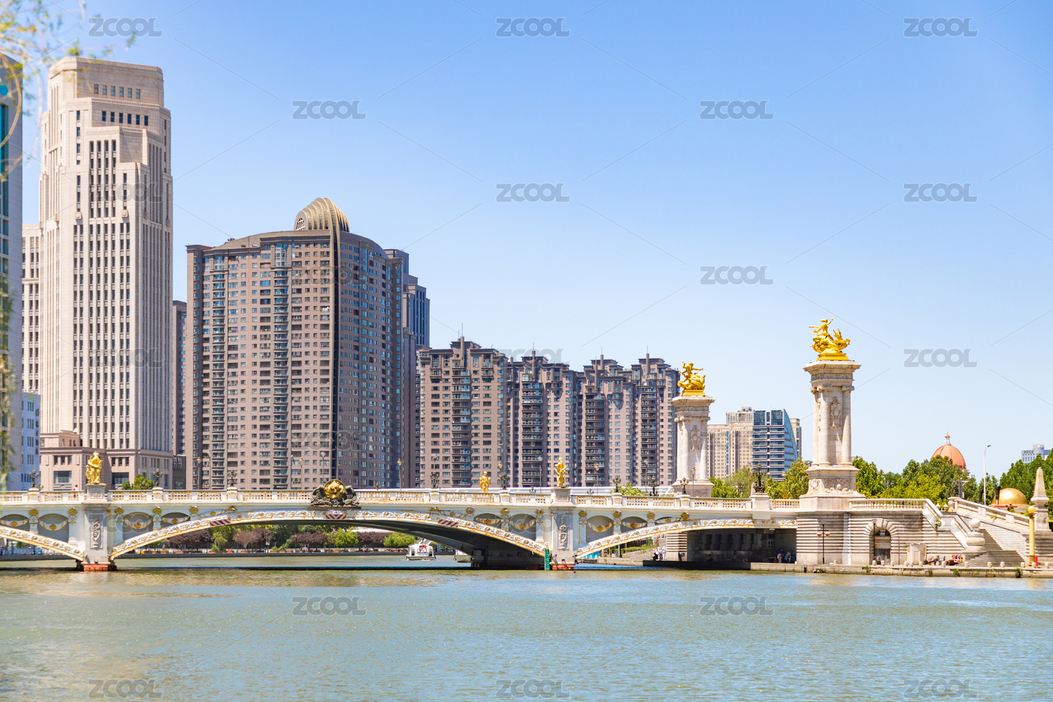 天津市海河沿岸,意大利風(fēng)情區(qū)北安橋與教堂