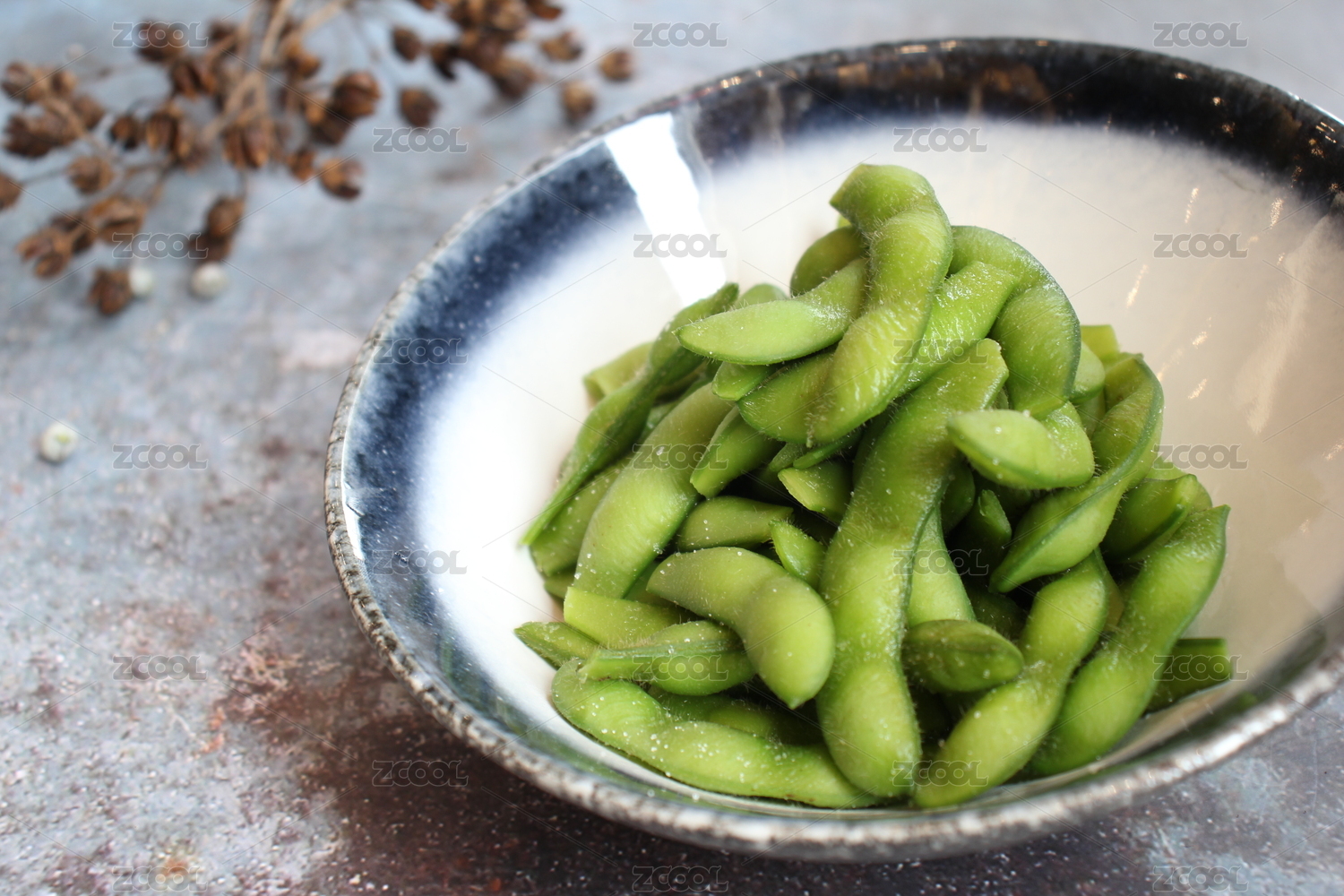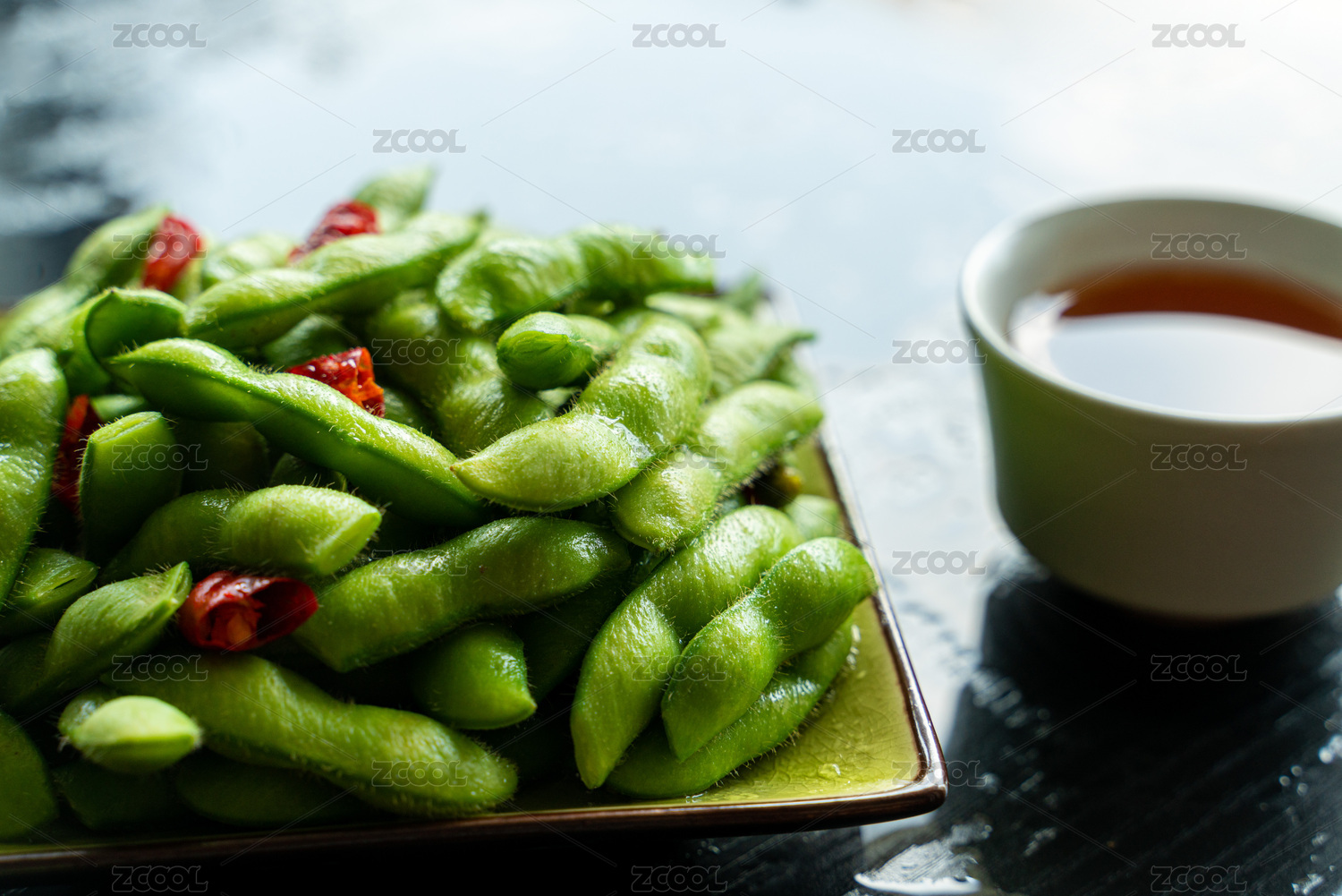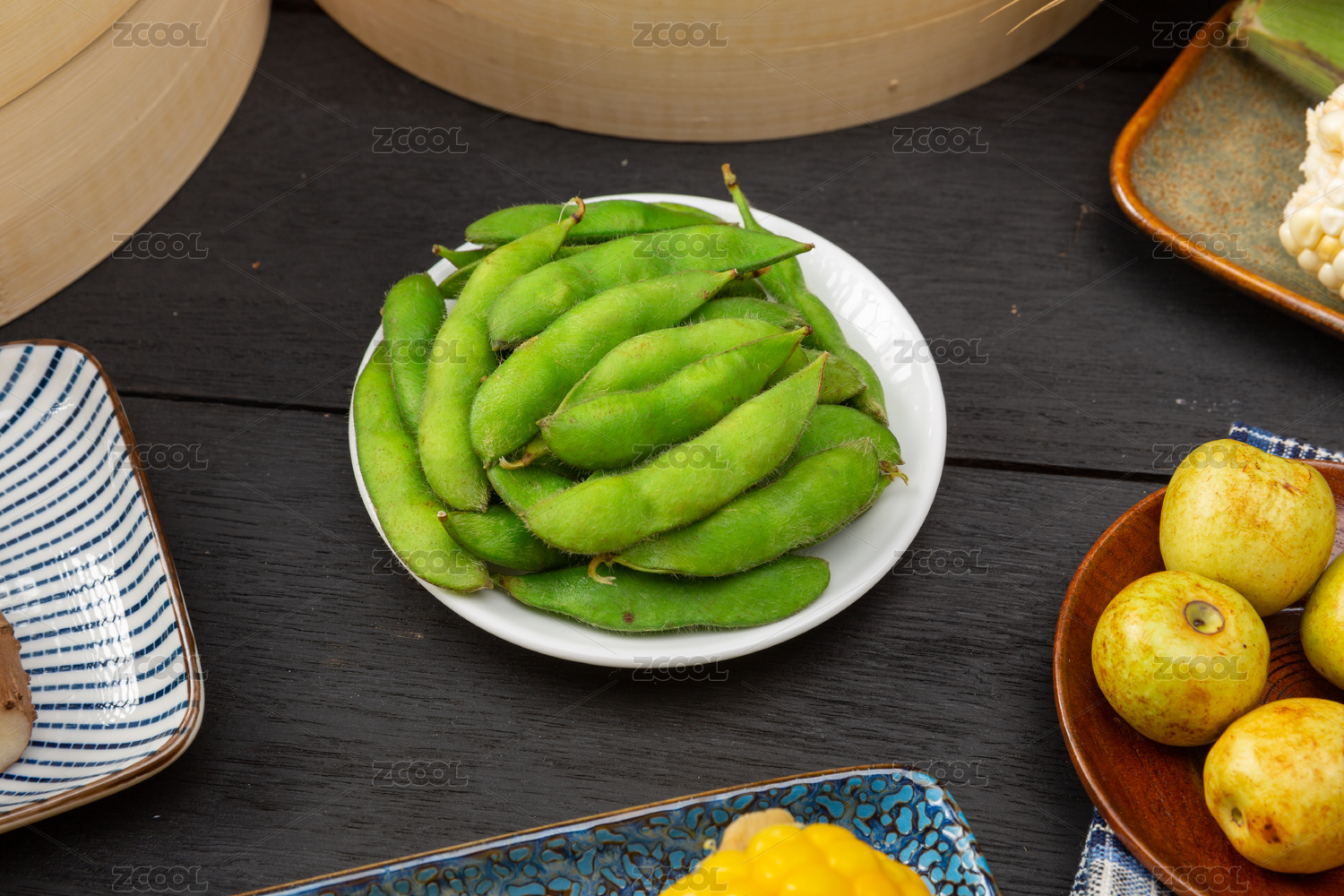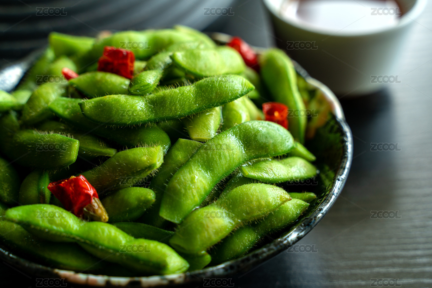 托盤上的一盤小菜水煮毛豆