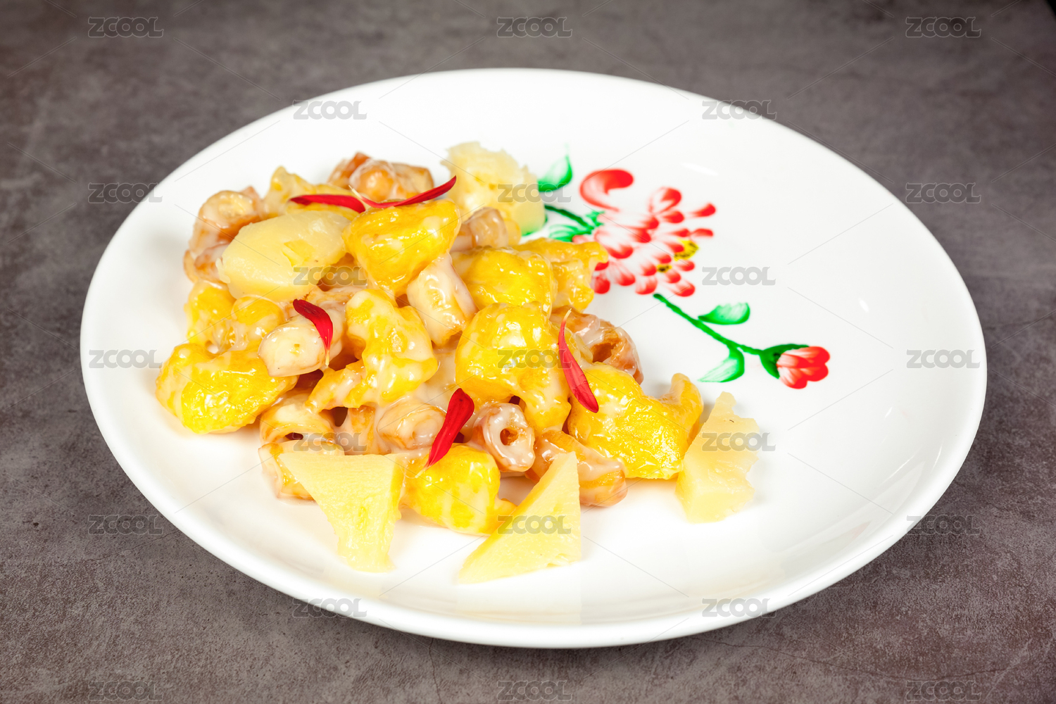 餐盤里的菠蘿沙拉