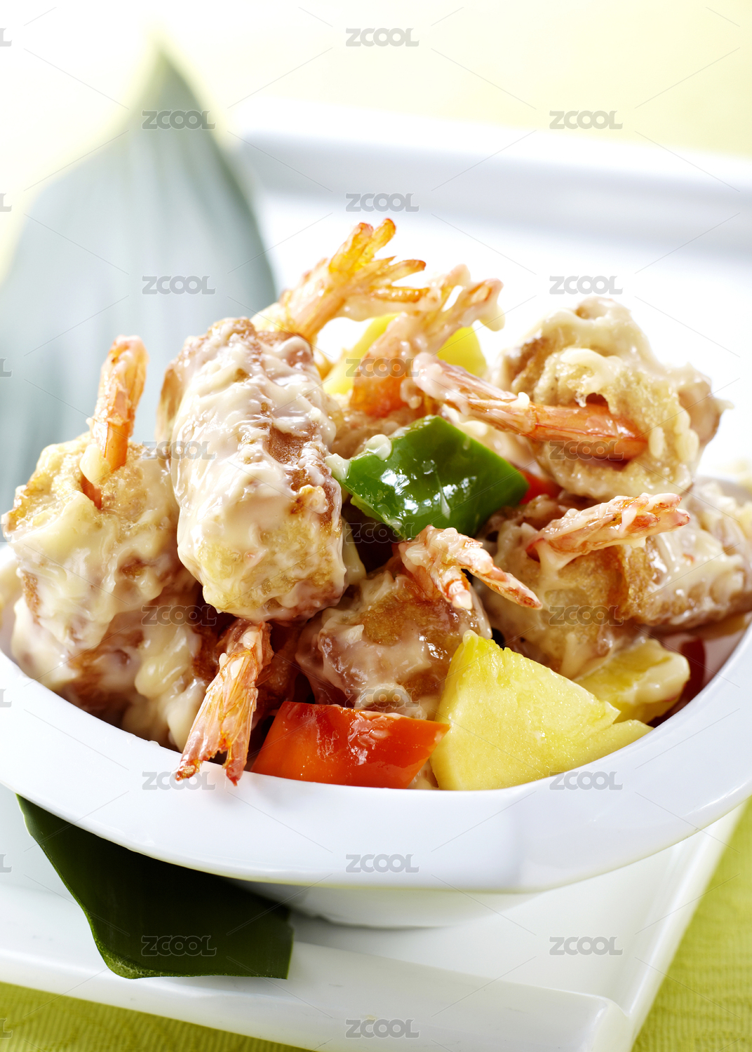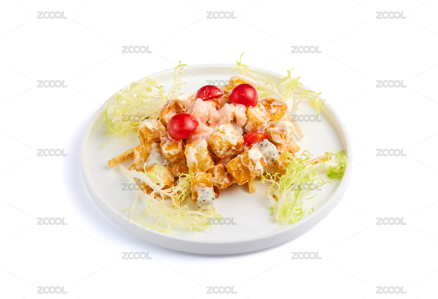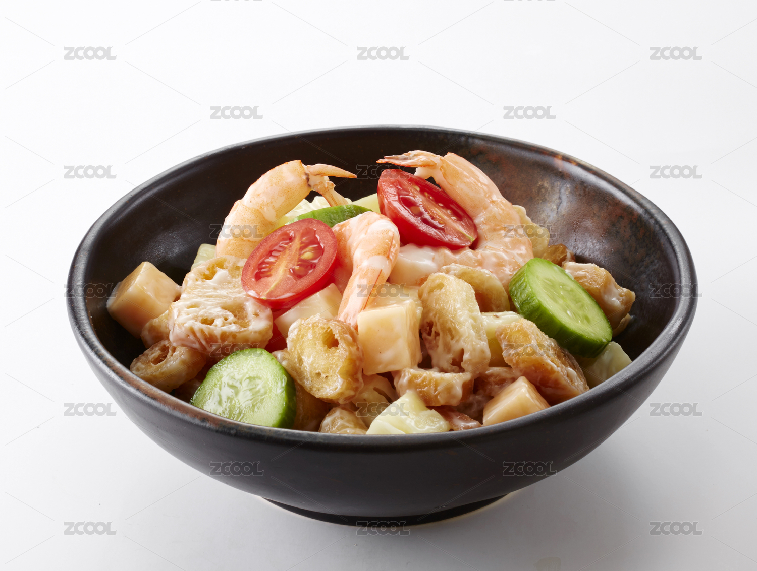 美味的中式食物油條蝦仁沙拉