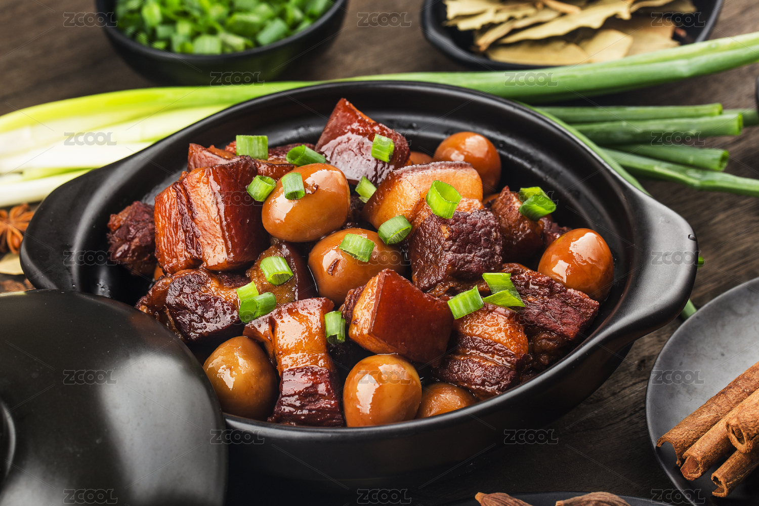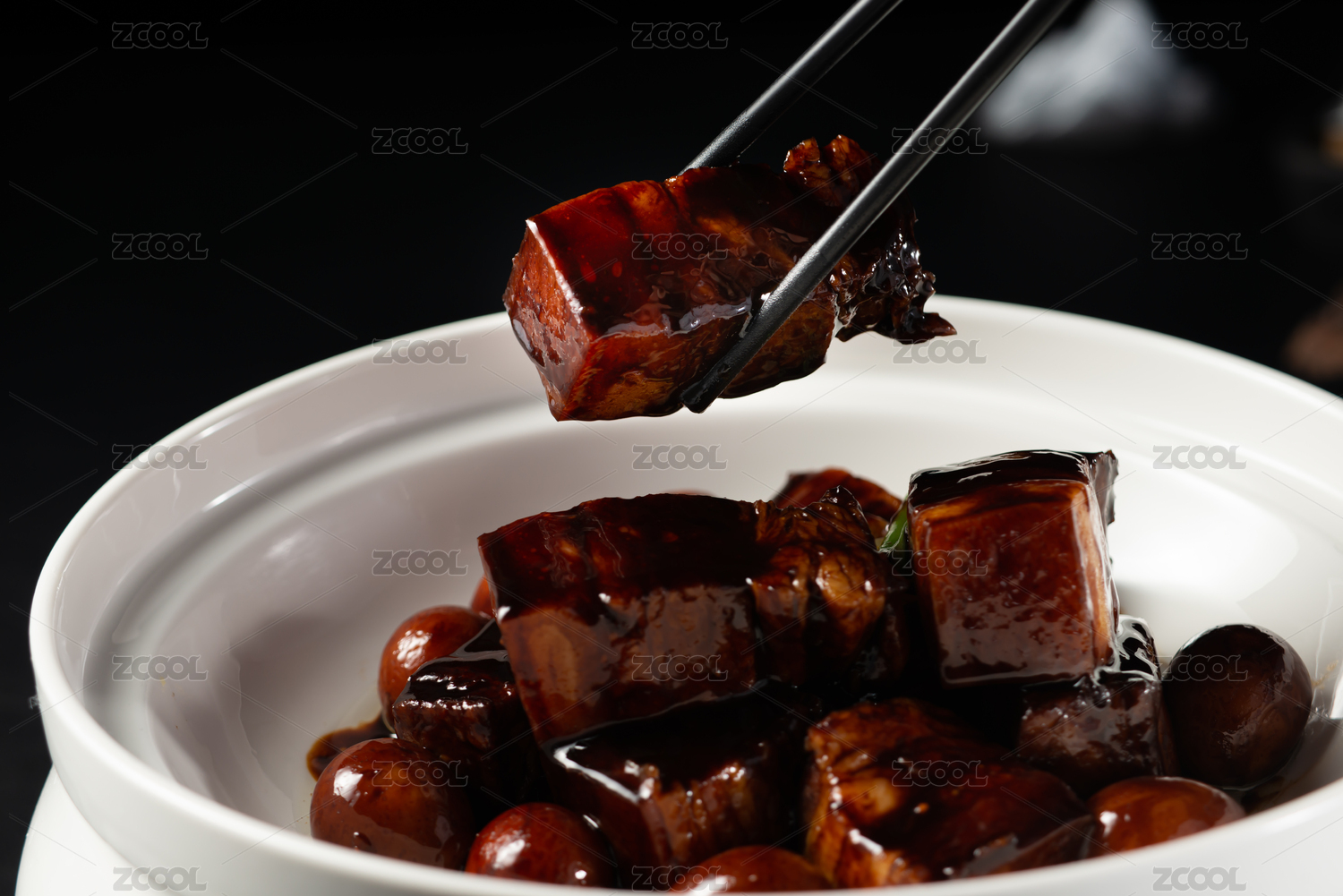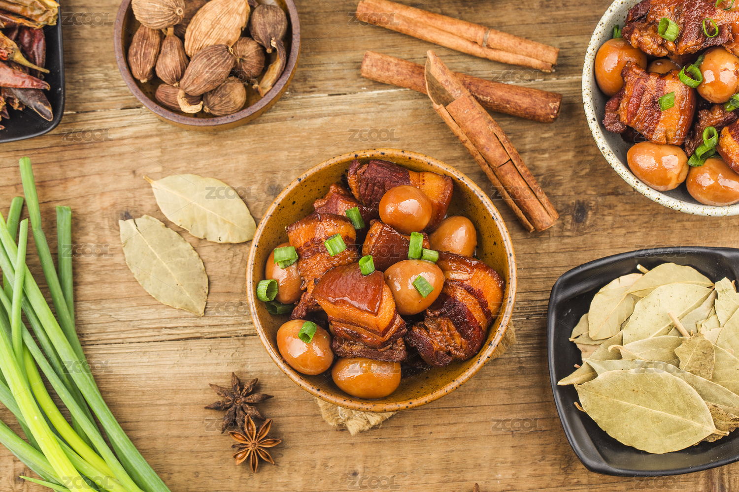 木紋背景上碗里的紅燒肉五花肉
