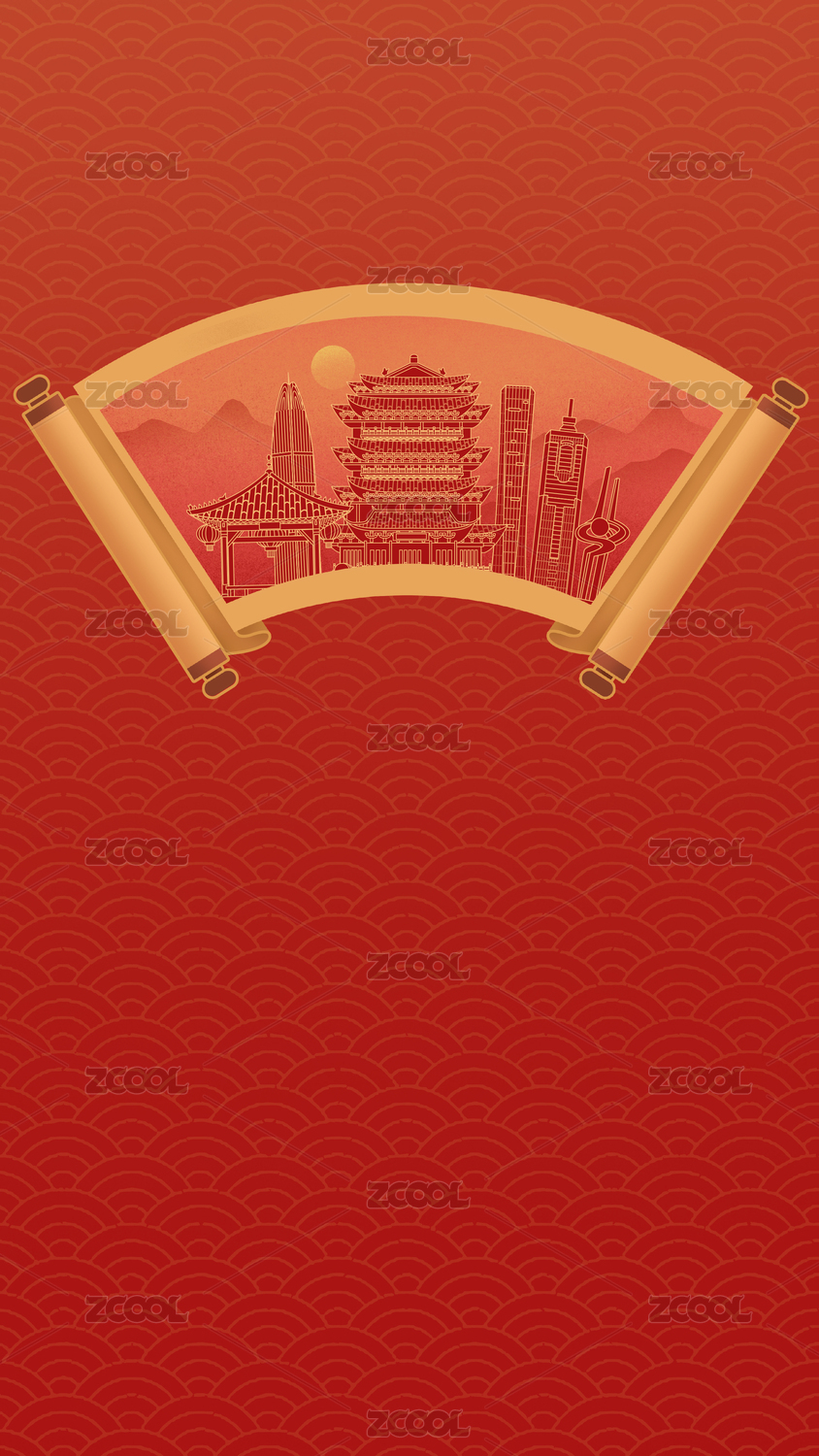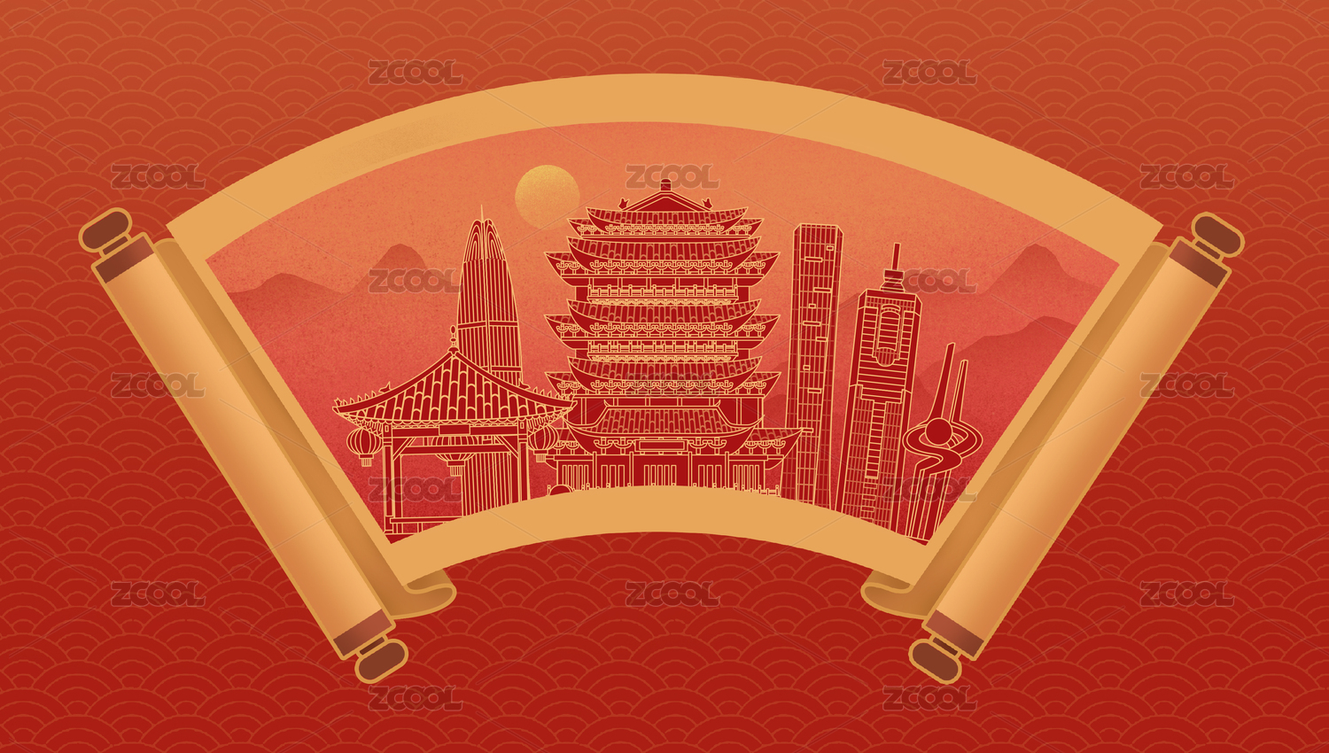 中國濟南中國風畫卷古典卷軸書卷城市建筑