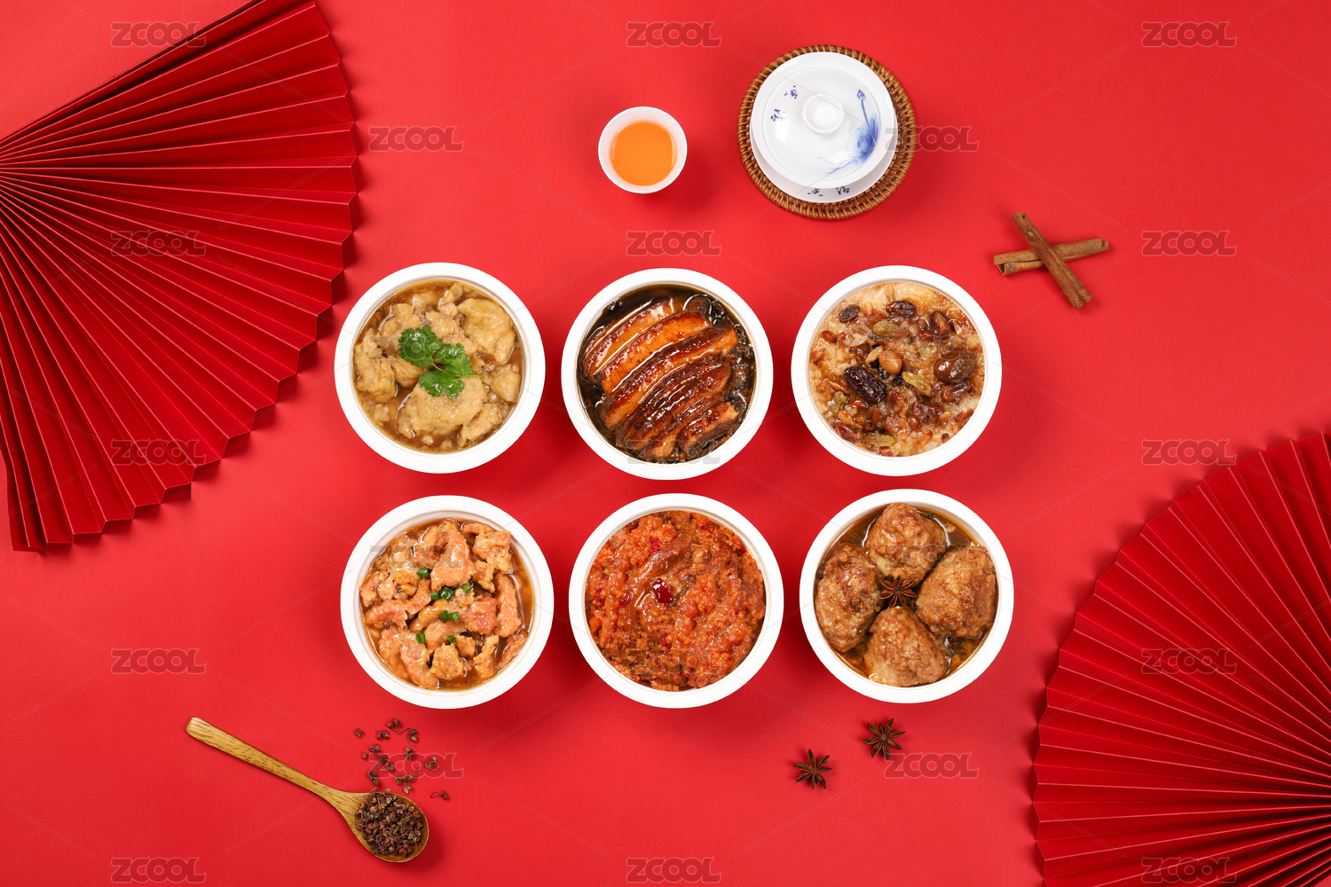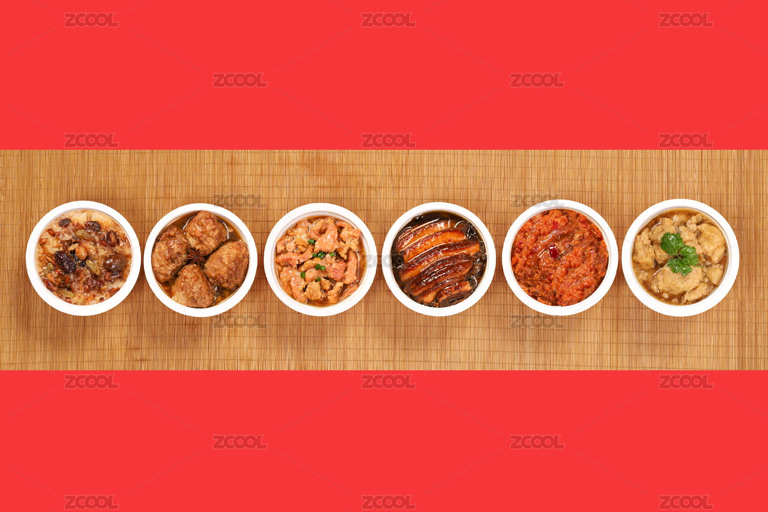 紅色背景上的農(nóng)家蒸碗扣碗關(guān)中八大碗