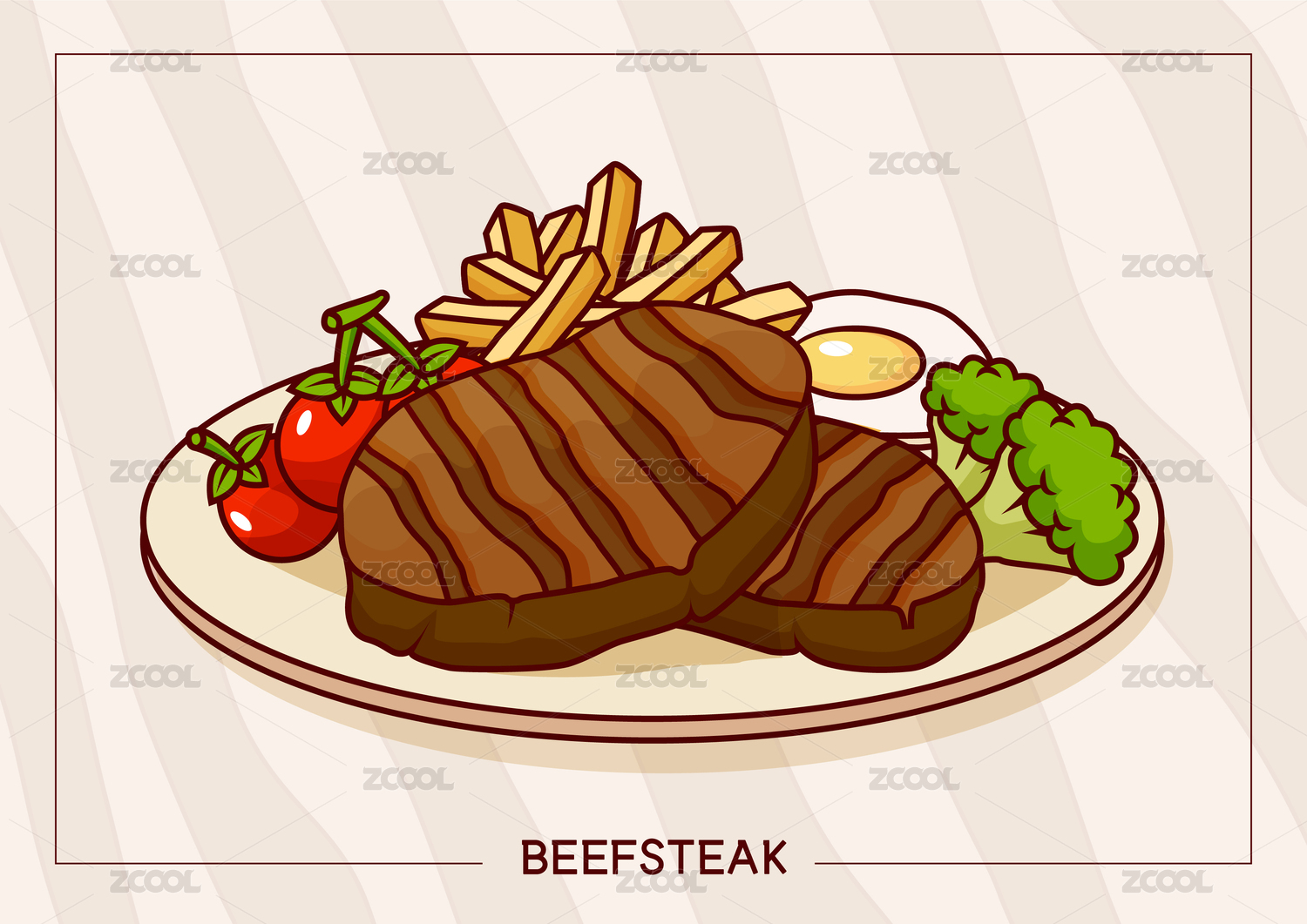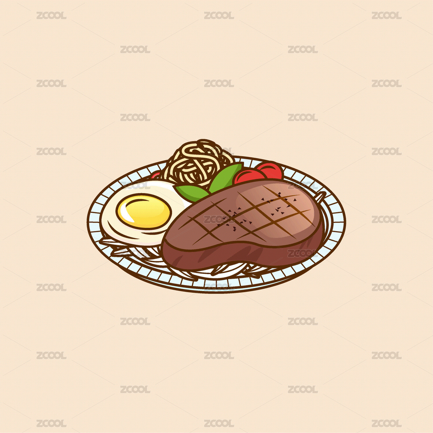 西餐牛排矢量插畫