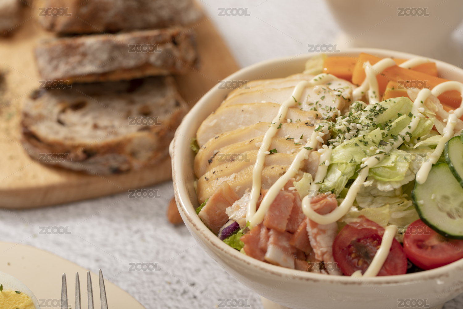 西餐沙拉和切片面包