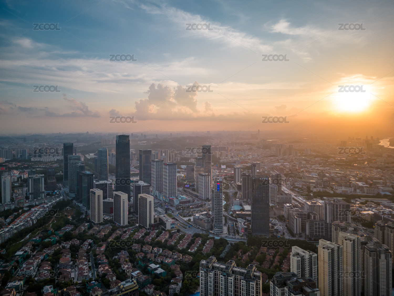 廣州南村萬(wàn)博日落晚霞建筑風(fēng)光