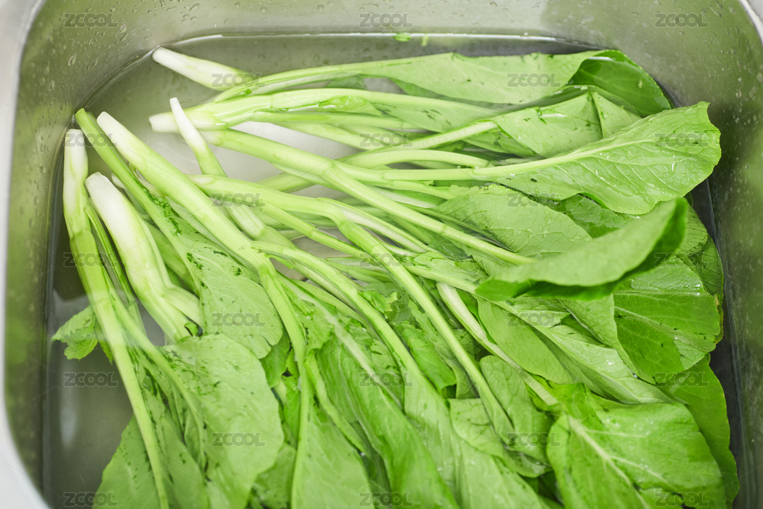 水槽中浸泡清洗的廣東菜心