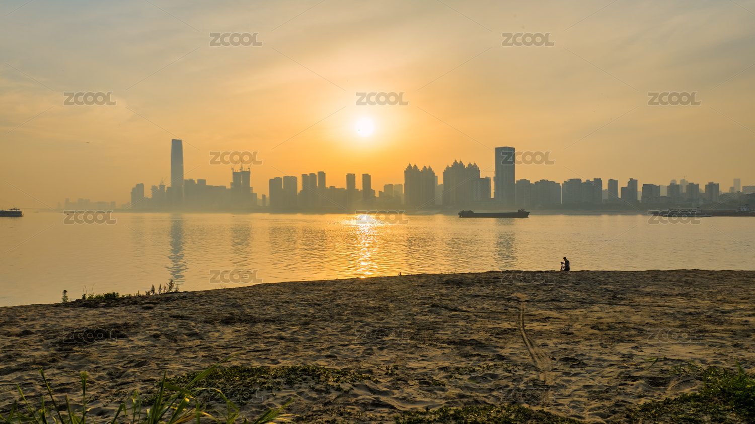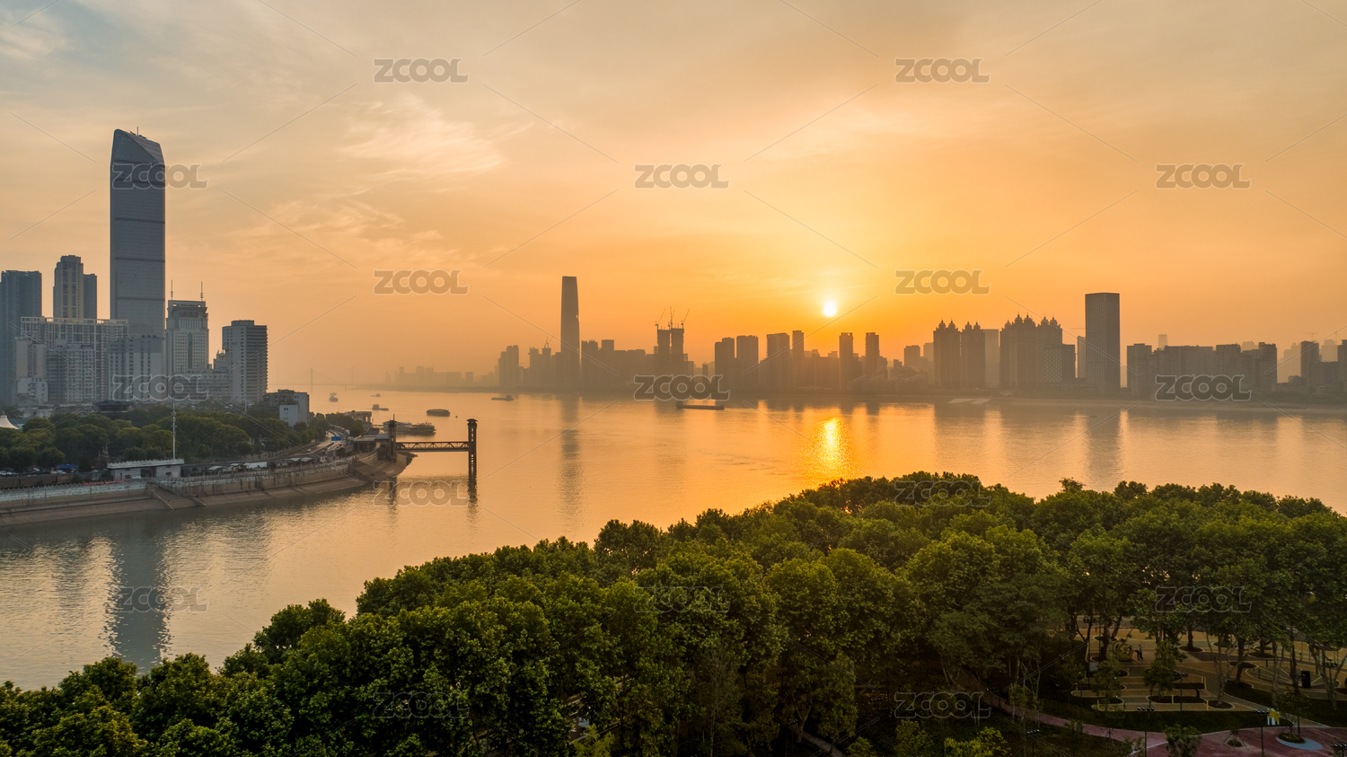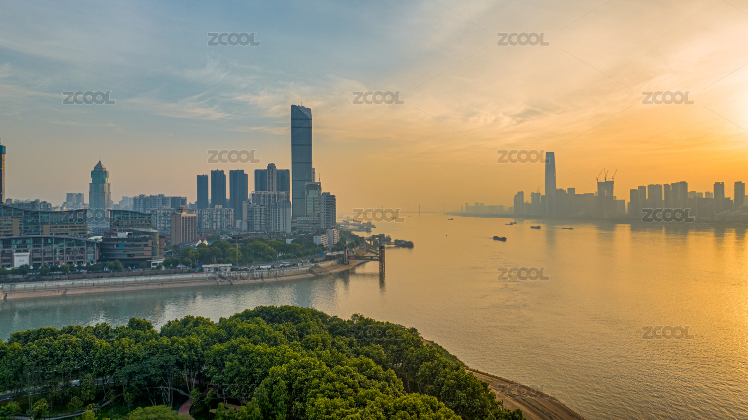 武漢長江南岸嘴城市天際線日出