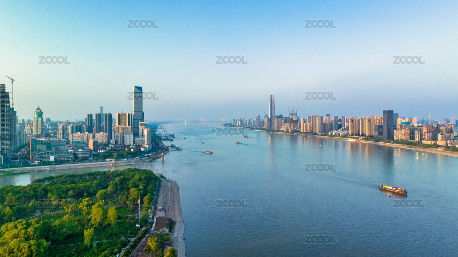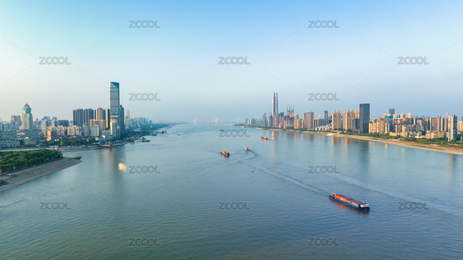 湖北武漢長江航道晴朗天空