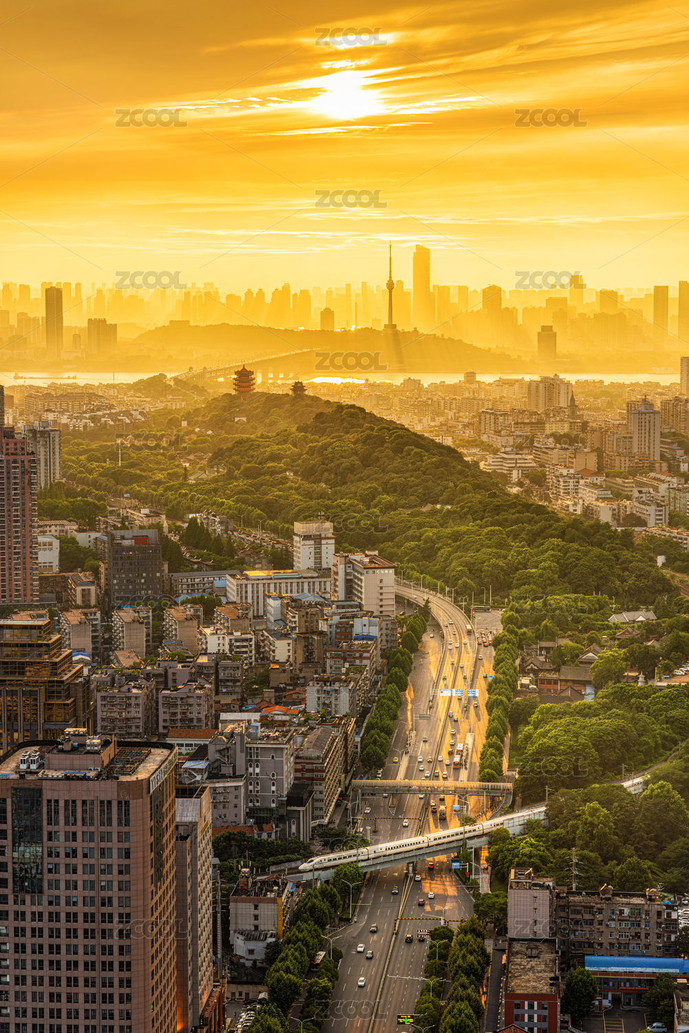 絕美夕陽下的武漢天際線 包含黃鶴樓等地標(biāo)