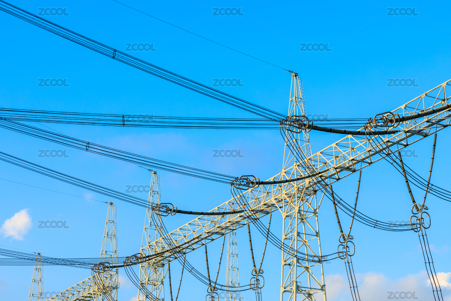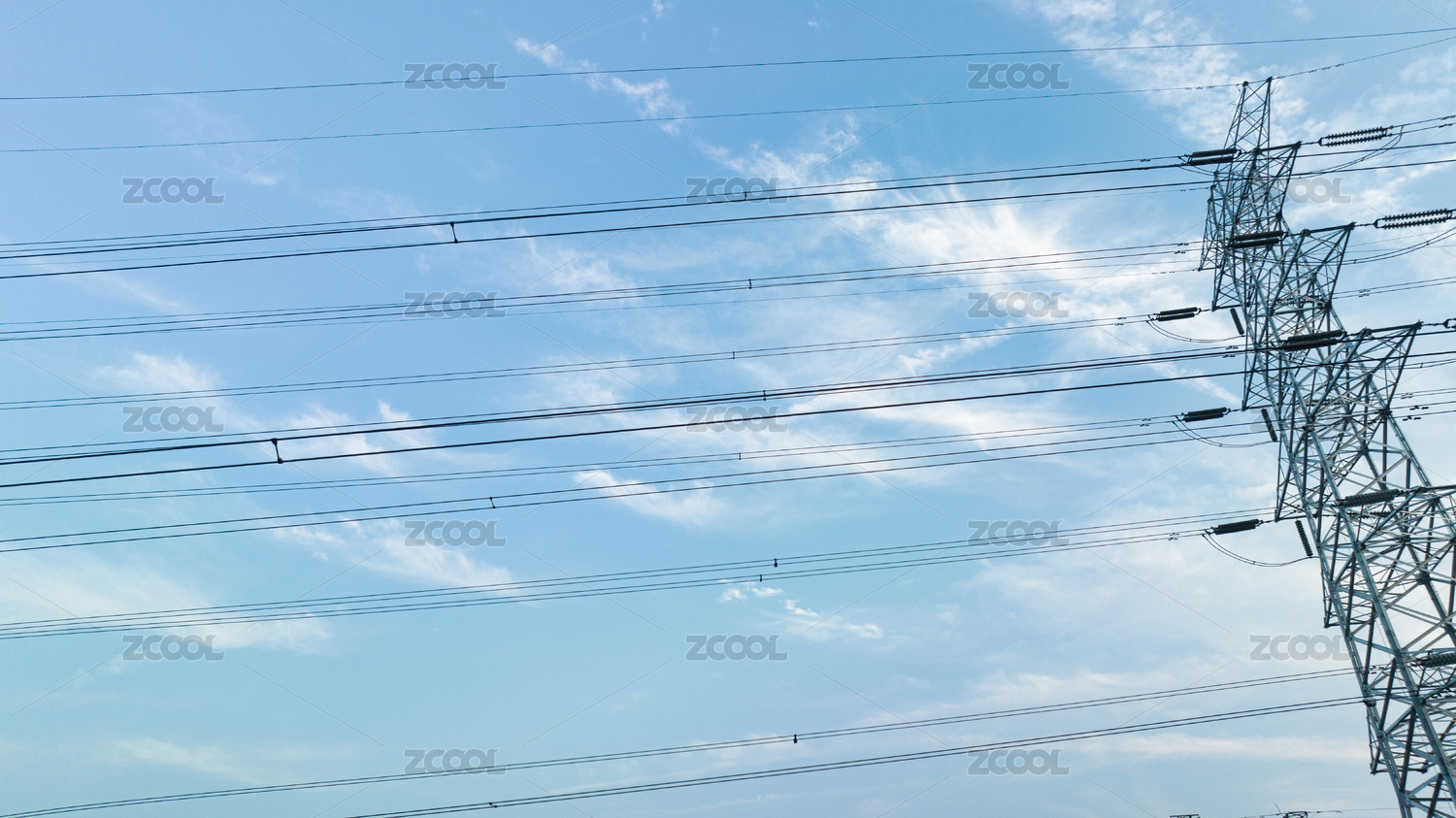 藍(lán)天背景下的高壓供電線路