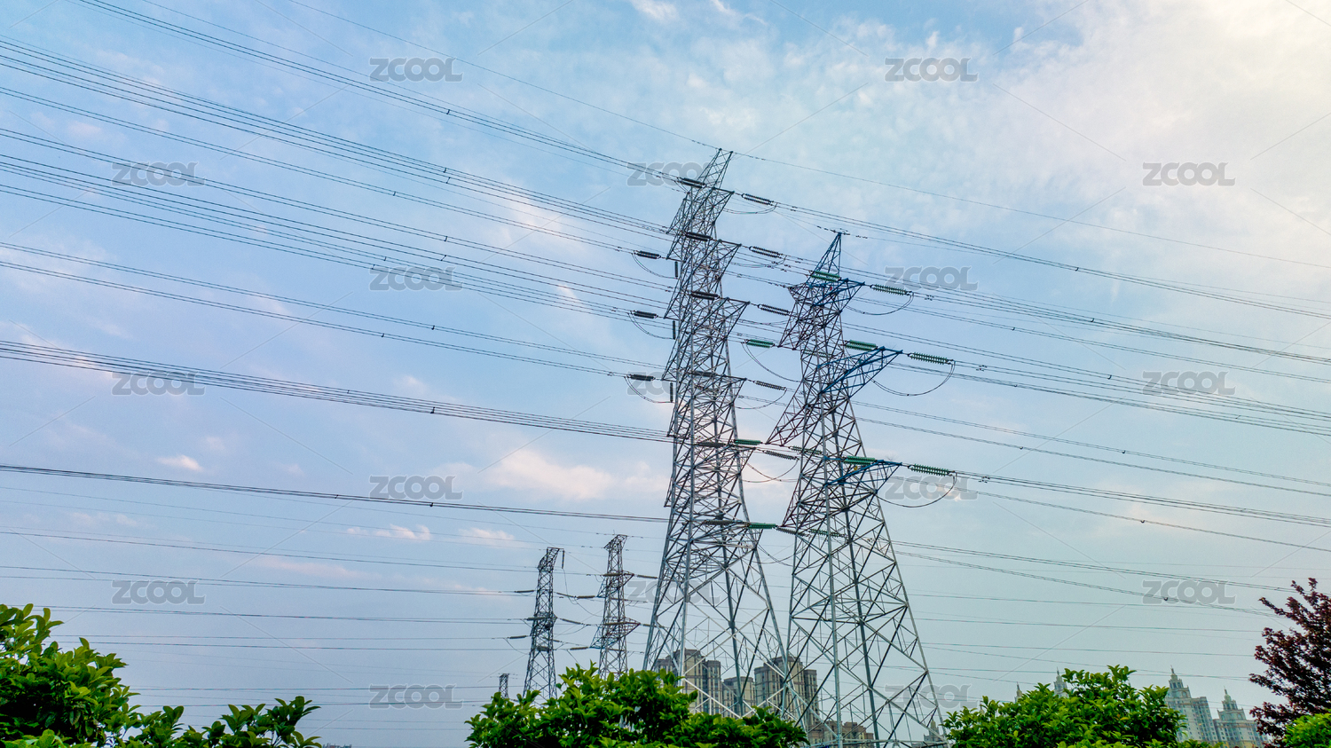 藍(lán)天下的高壓供電塔