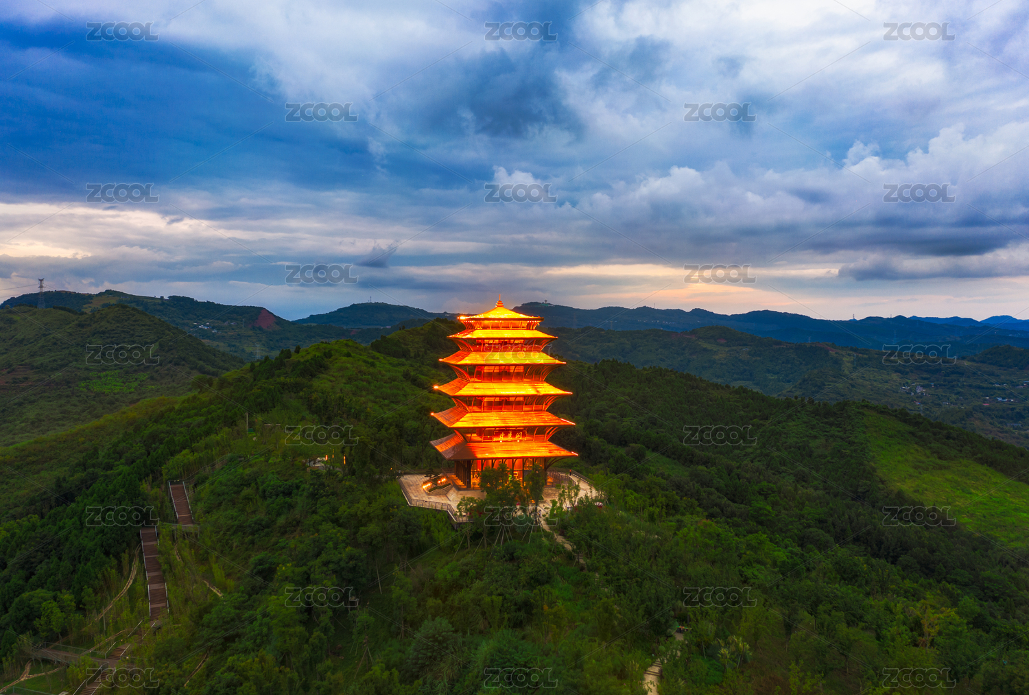四川成都龍泉山城市森林公園丹景臺(tái)夜景航拍