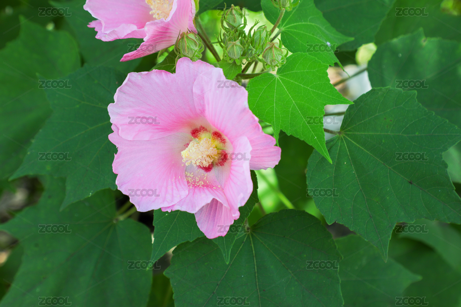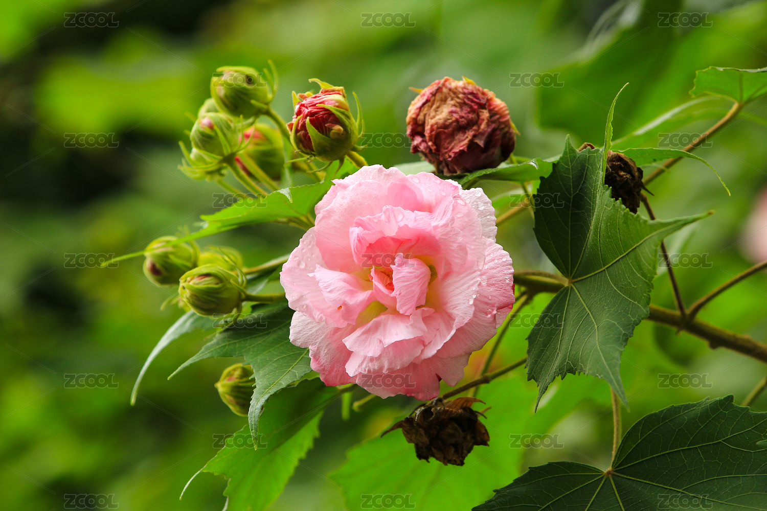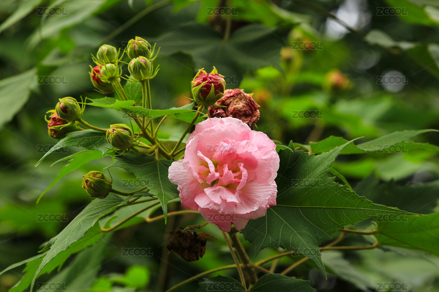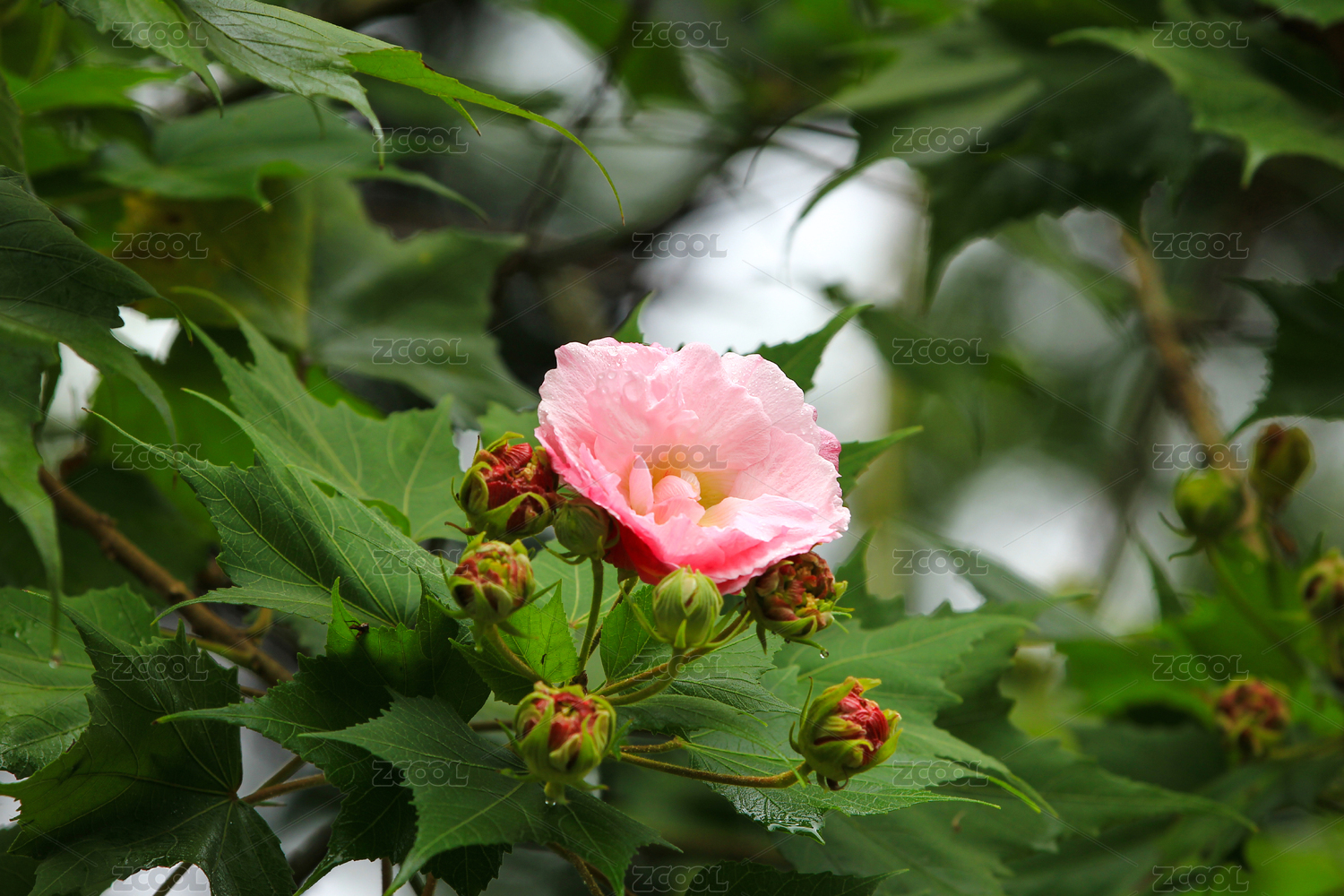 天府廣場園林盛開的成都市花芙蓉和行道樹