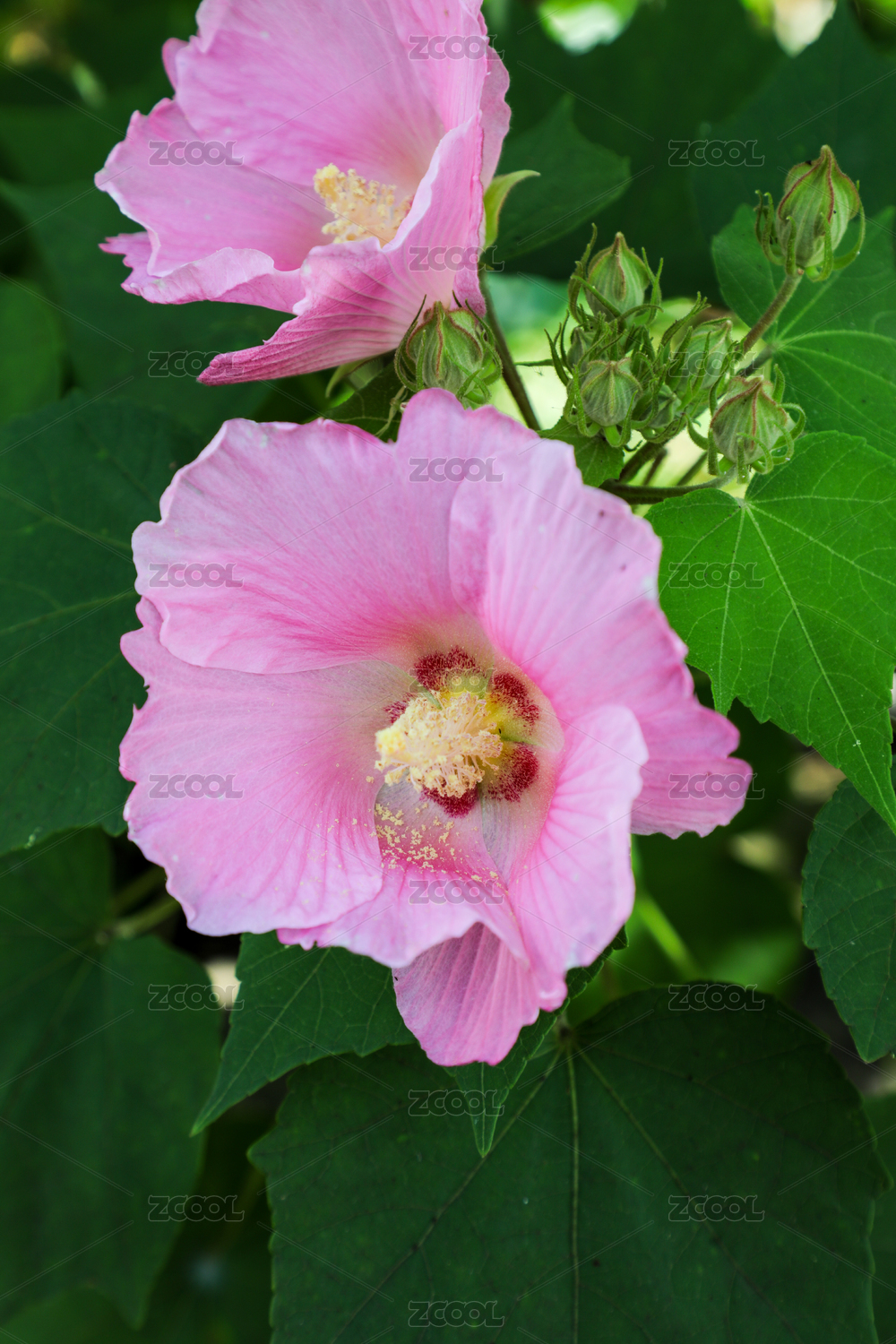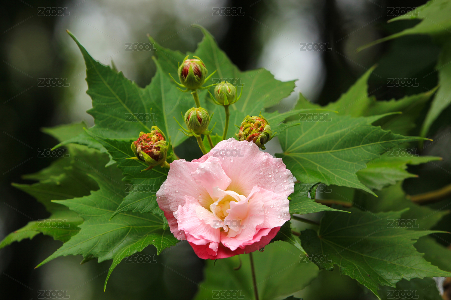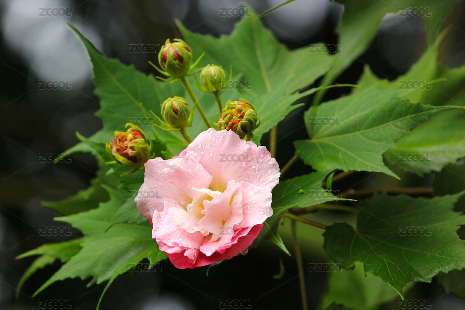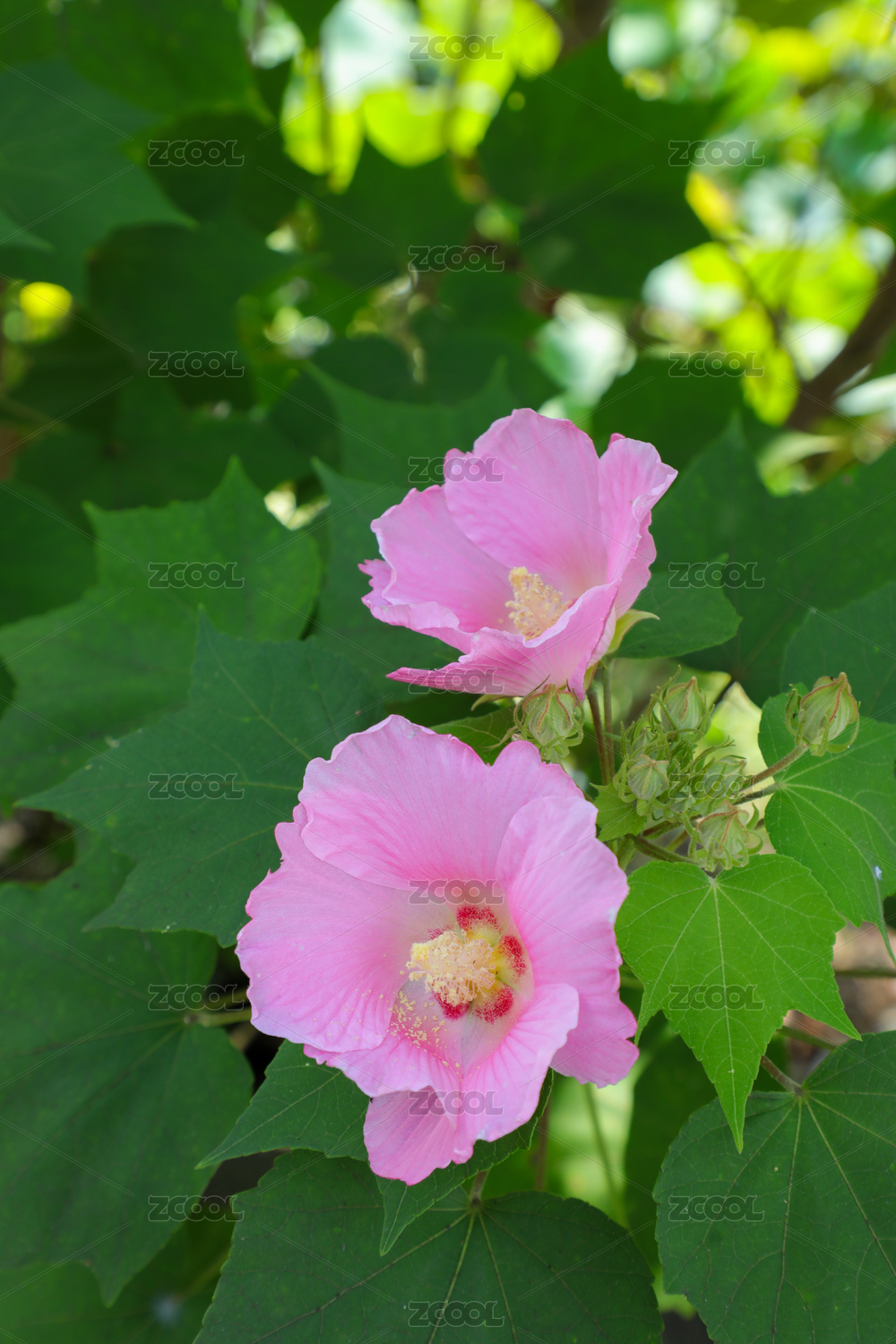 天府廣場園林盛開的成都市花芙蓉和行道樹