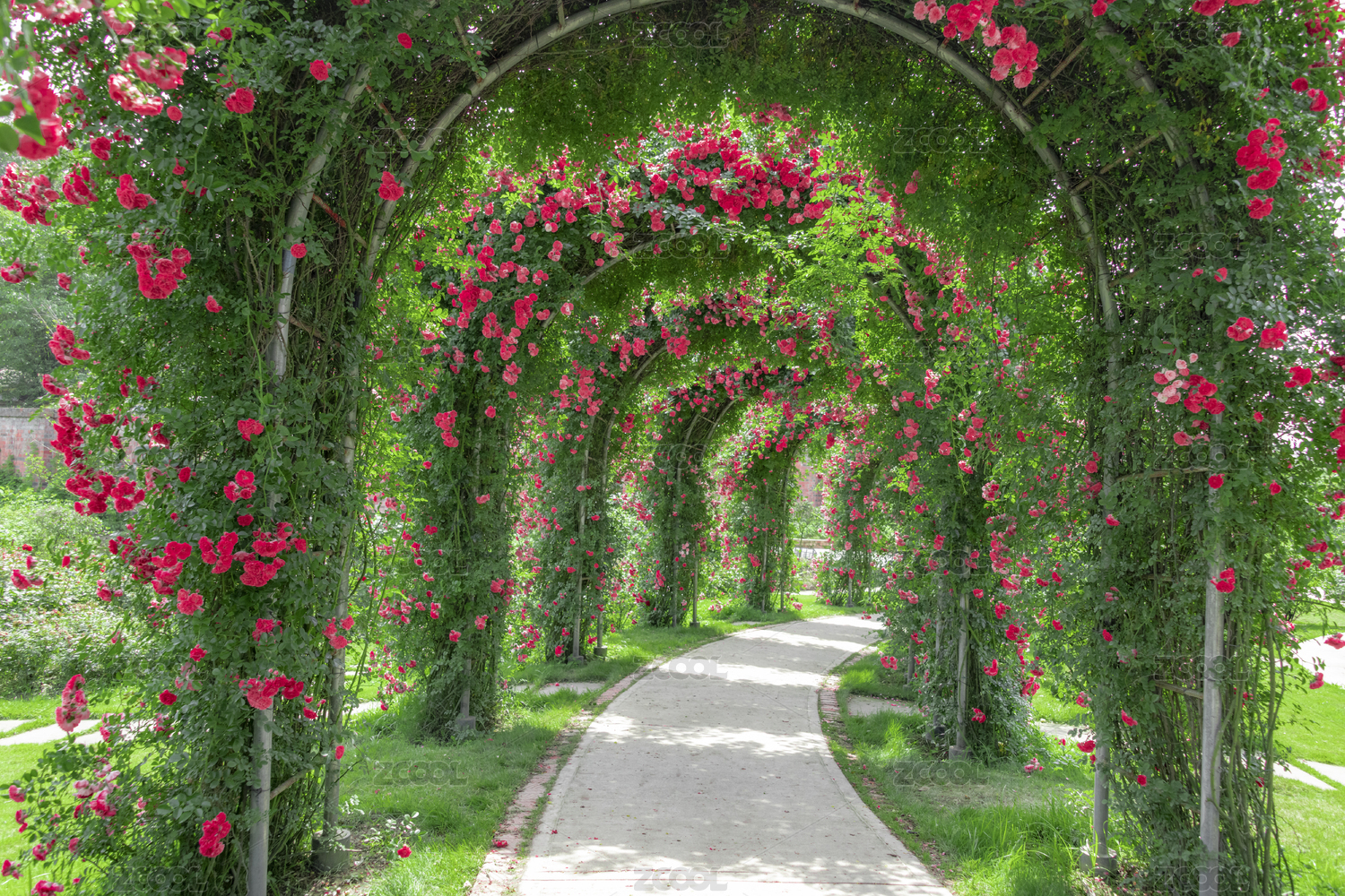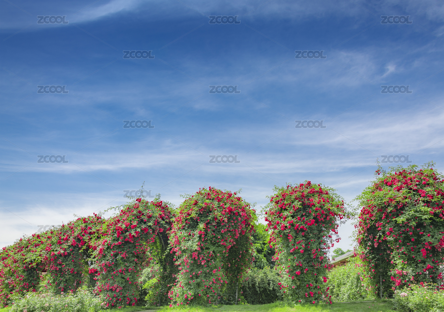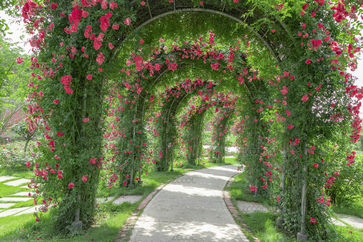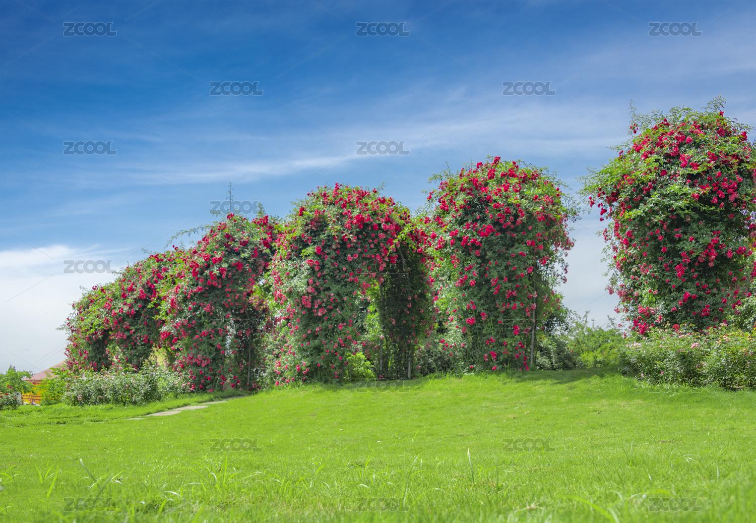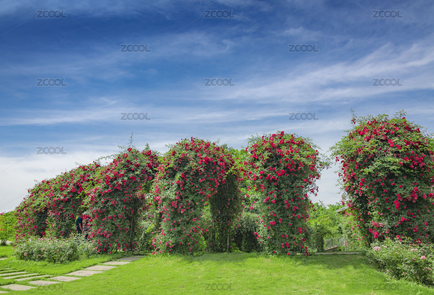 中國四川省成都市花舞人間景區(qū)的紅薔薇花園