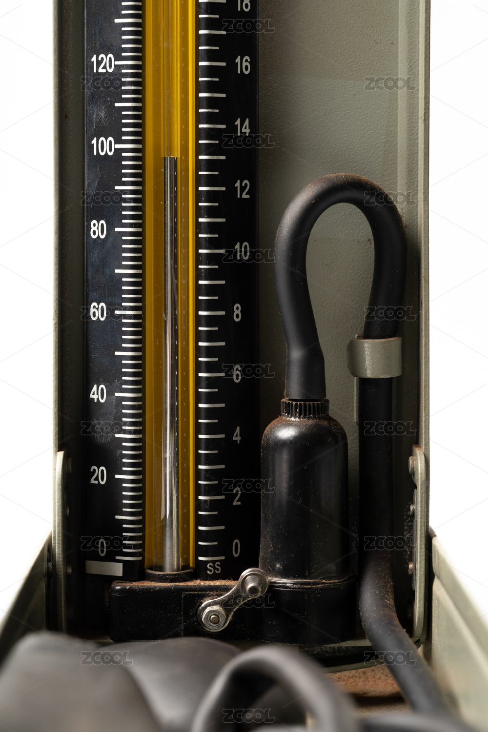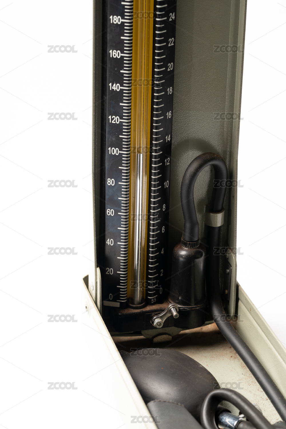 純色背景下的老舊水銀血壓計(jì)