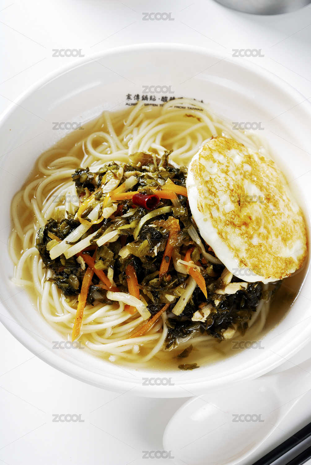 白背景一碗雪菜肉絲面