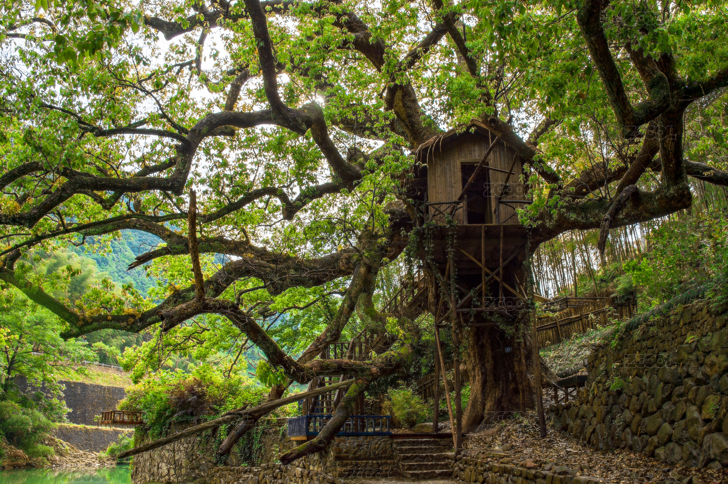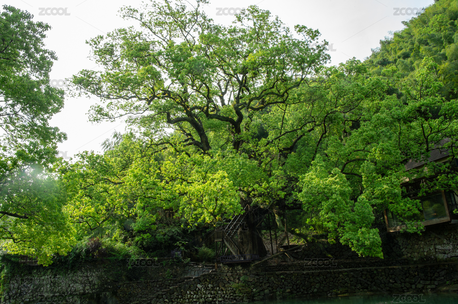 中國浙江省杭州富春江鎮(zhèn)風(fēng)光及千年古樟樹風(fēng)
