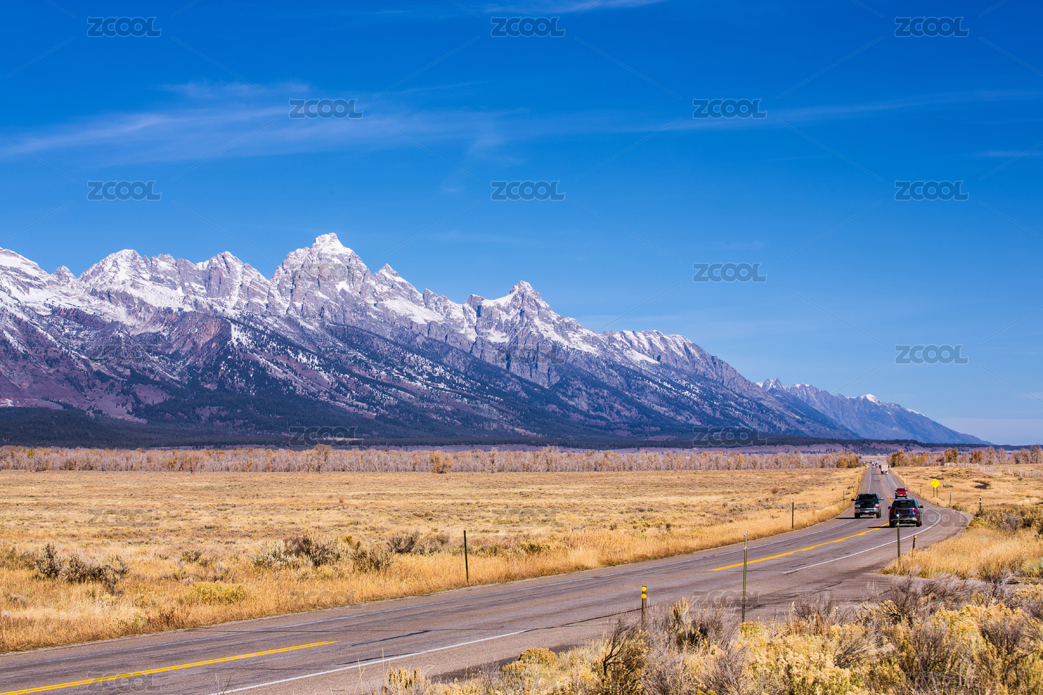 美國懷俄明州大提頓國家公園山區(qū)的高速公路
