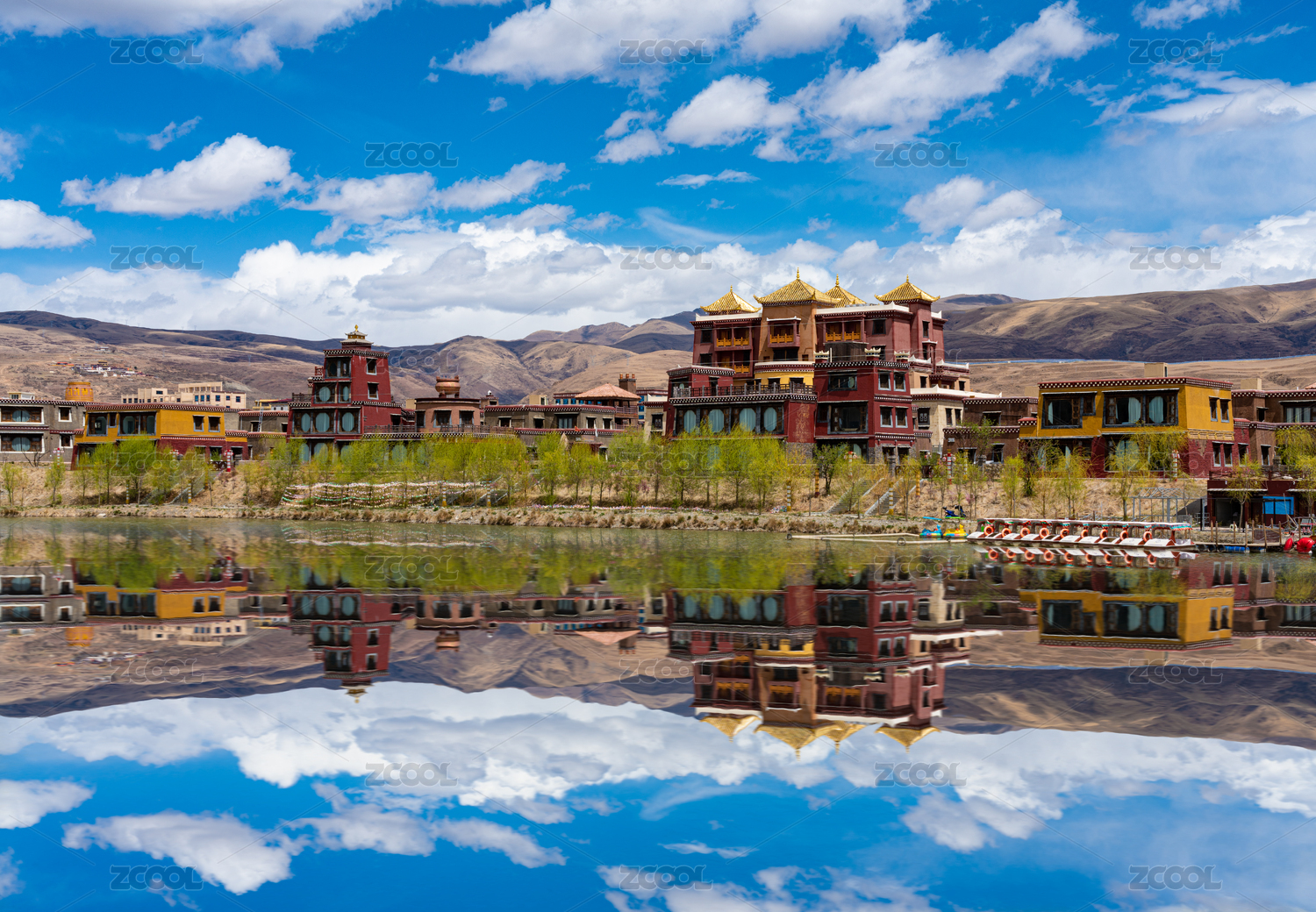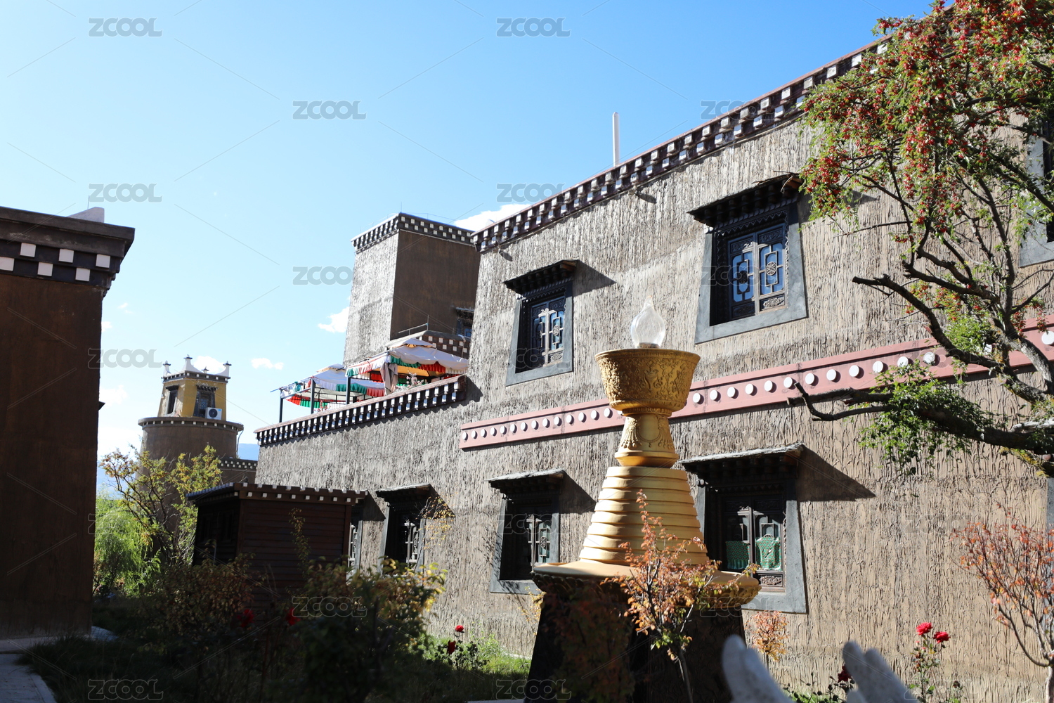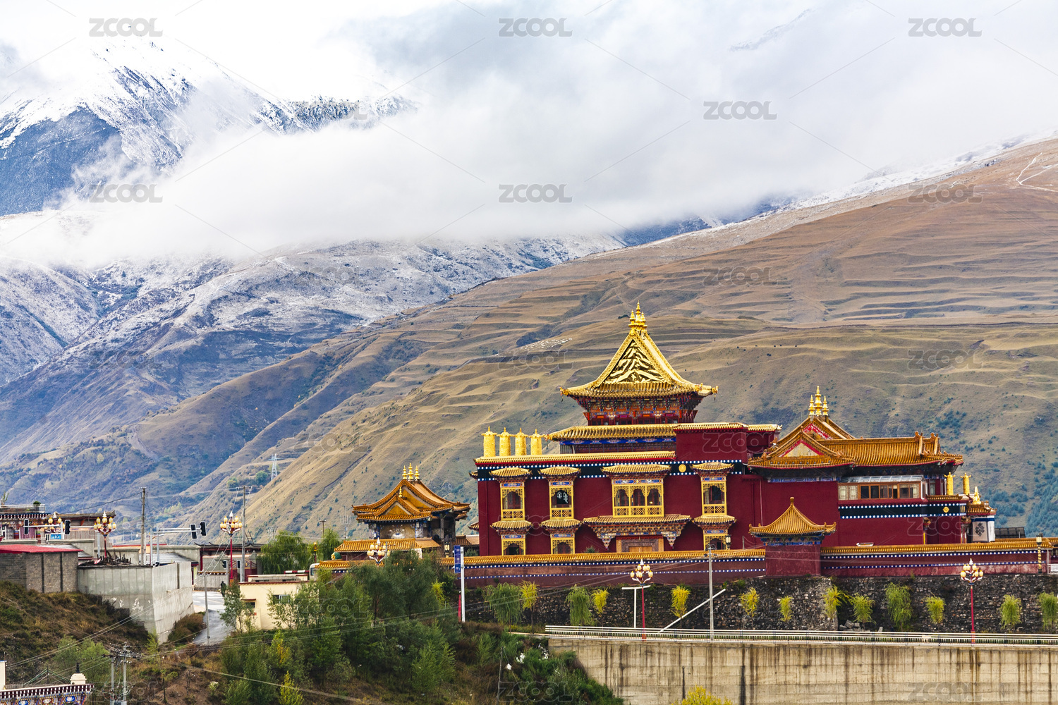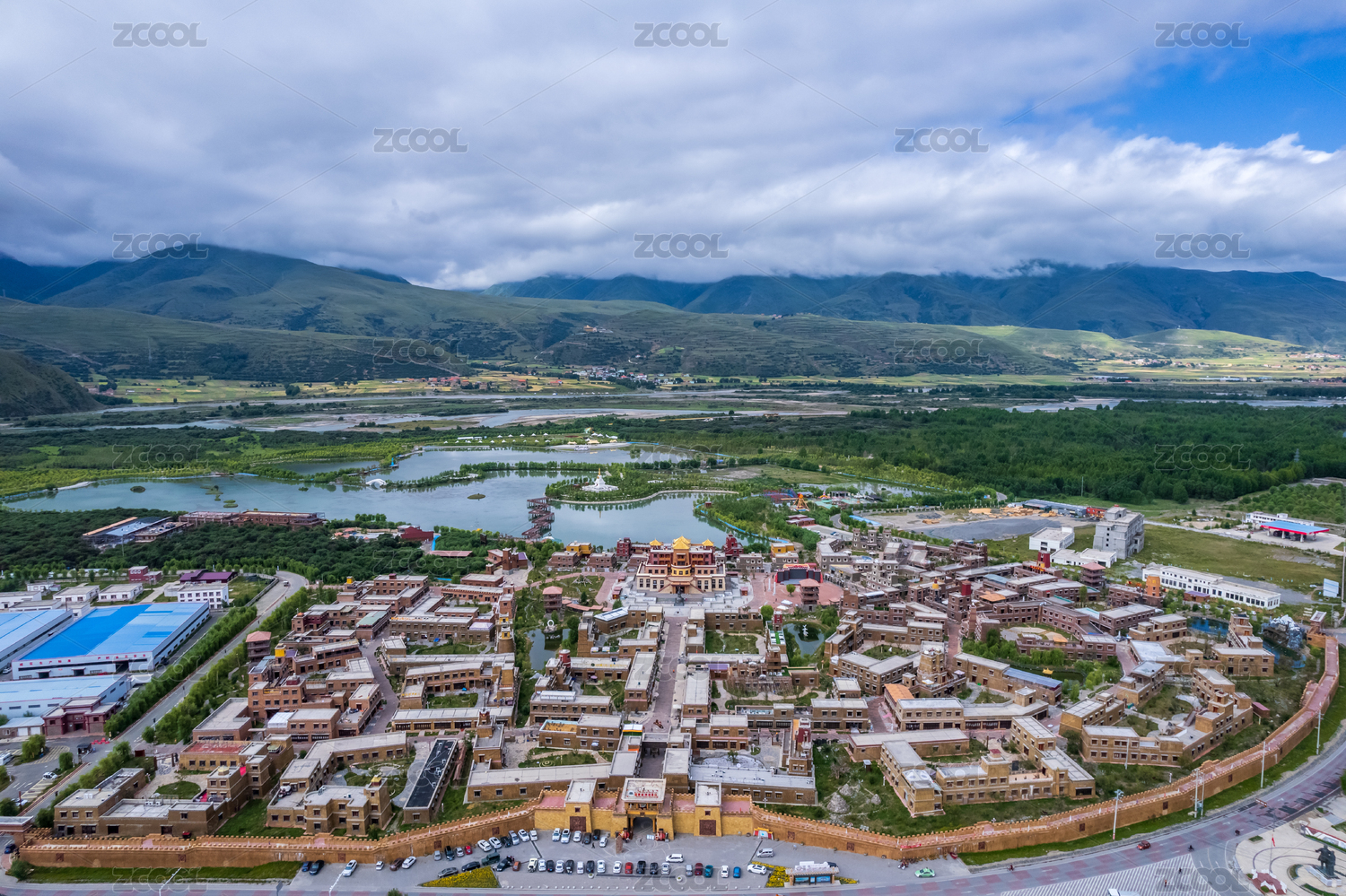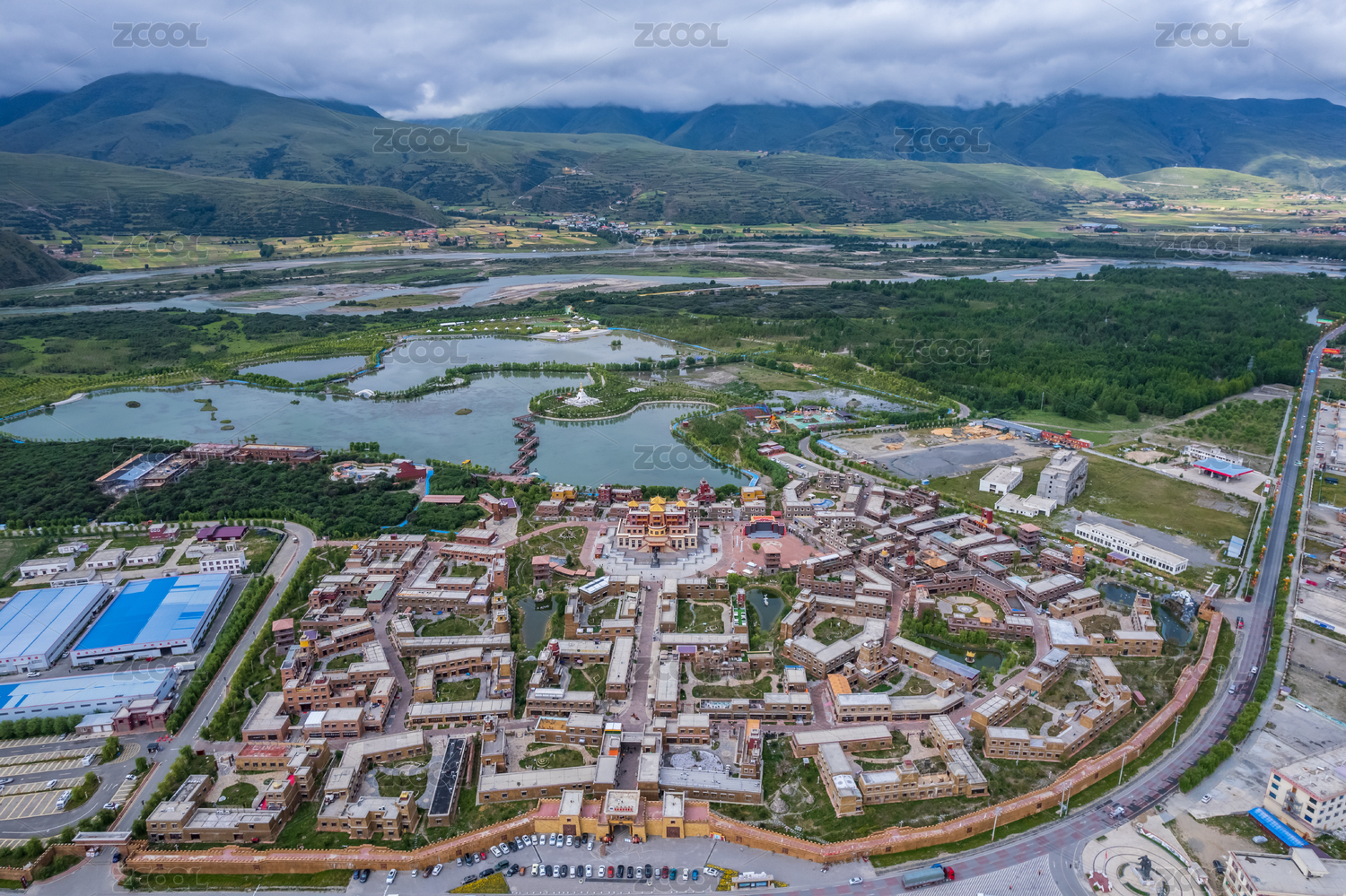 中國四川甘孜州甘孜縣格薩爾王城藏族建筑風光