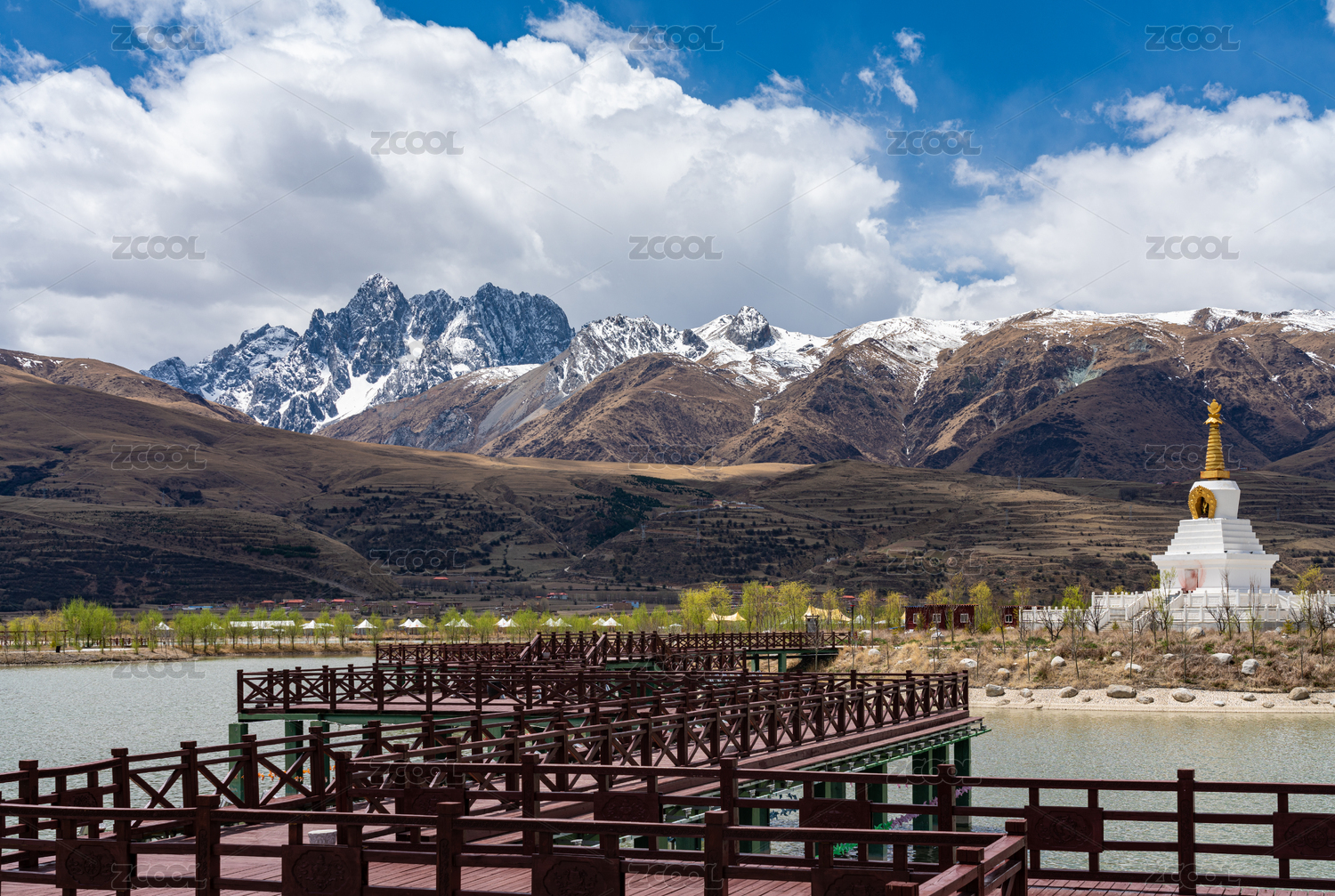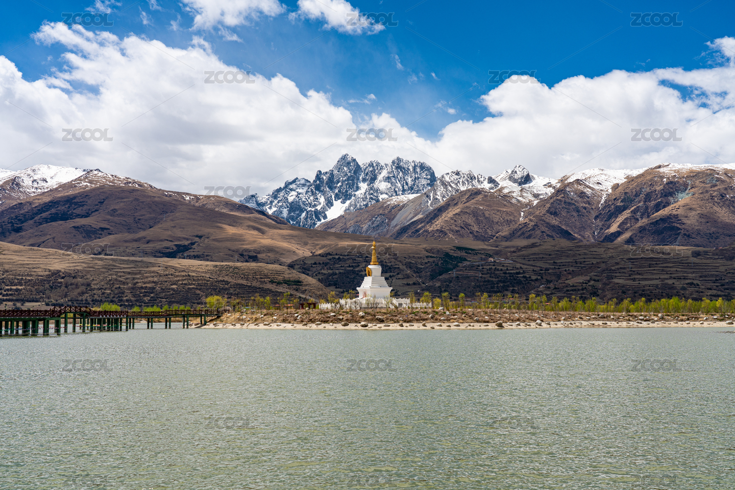 中國四川甘孜州甘孜縣格薩爾王城珠牡拉措風光