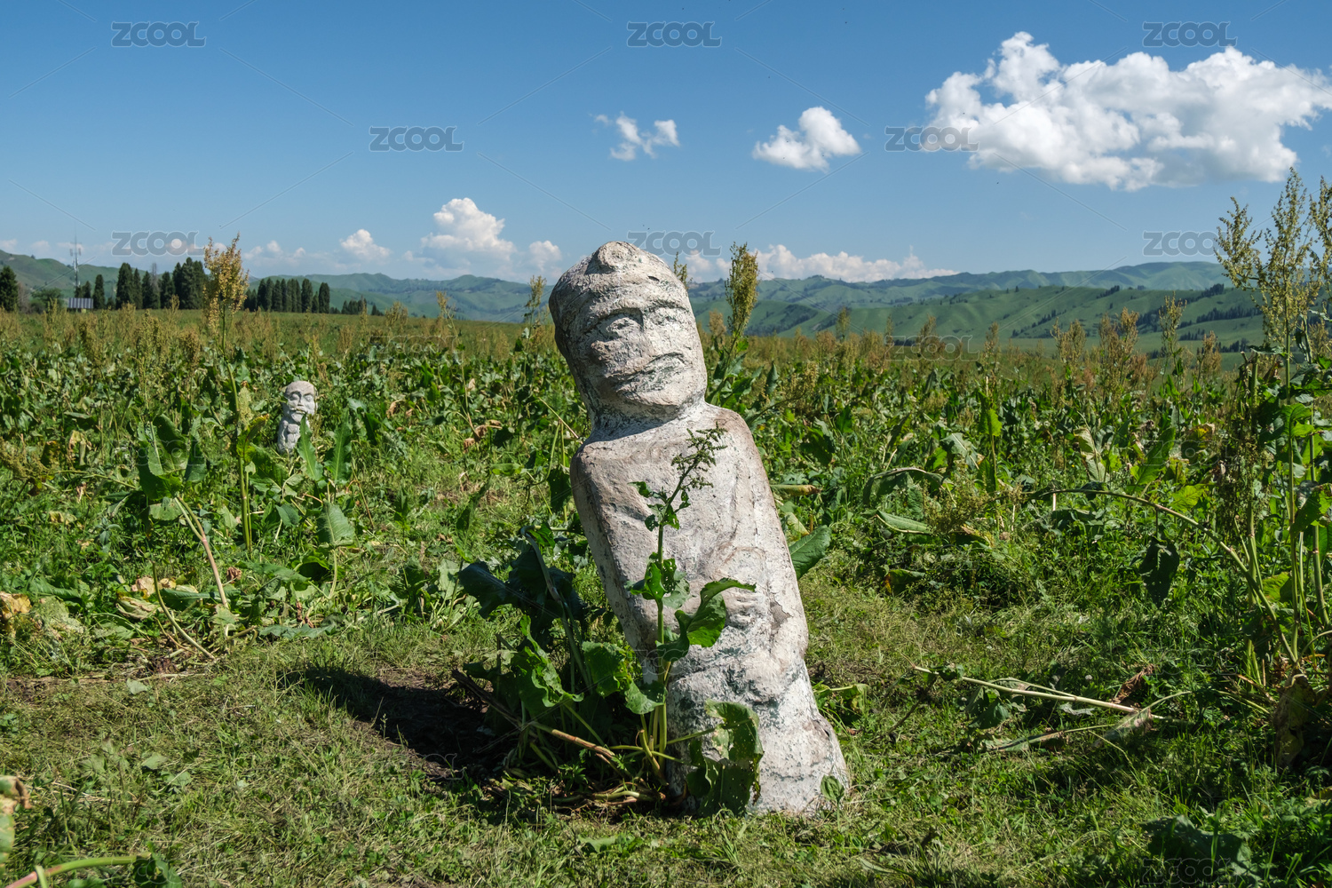 中國(guó)新疆伊犁庫(kù)爾德寧草原石人風(fēng)光