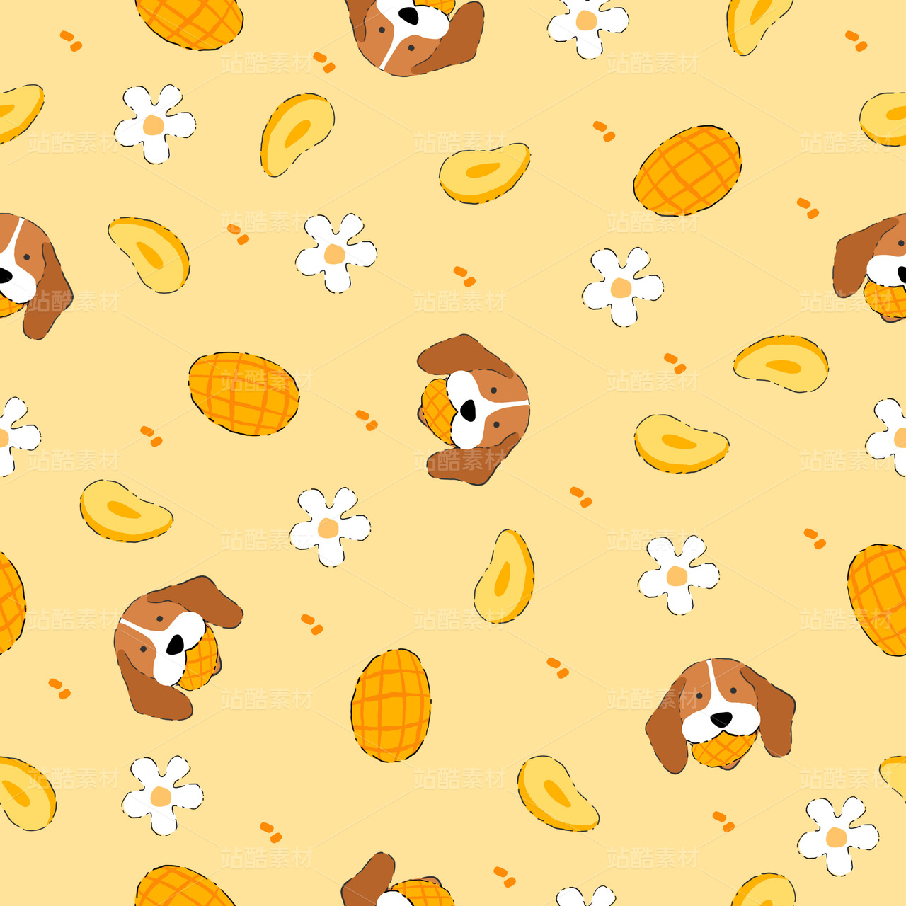 比格小狗吃芒果手繪清新風四方連續(xù)圖案