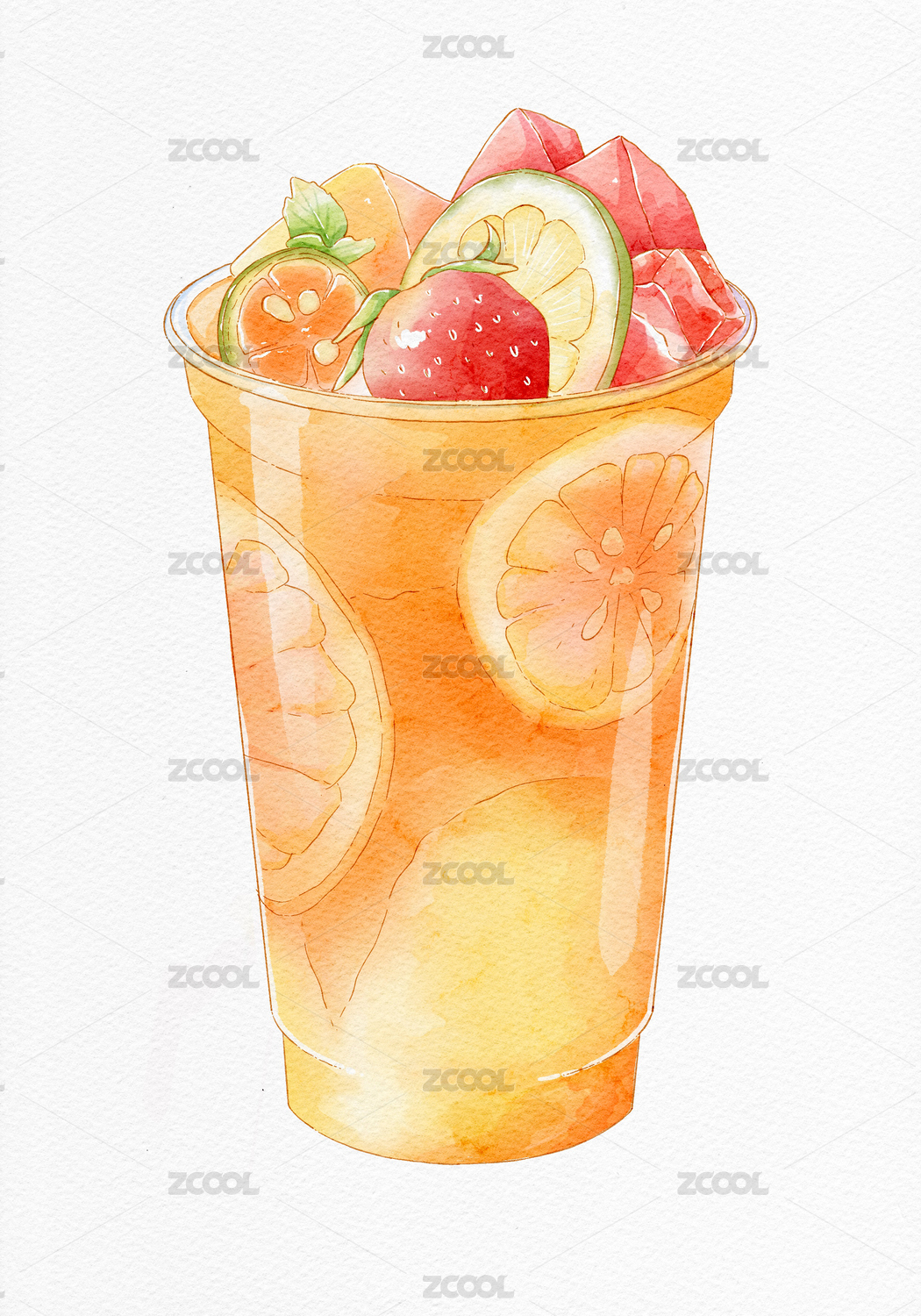 手繪水彩水果茶插畫清新風夏日飲料白色背景