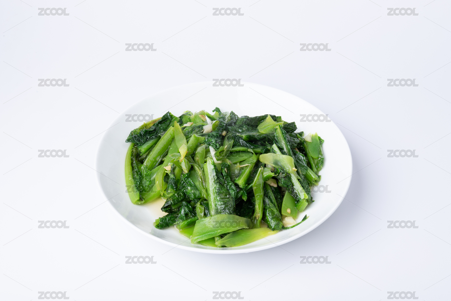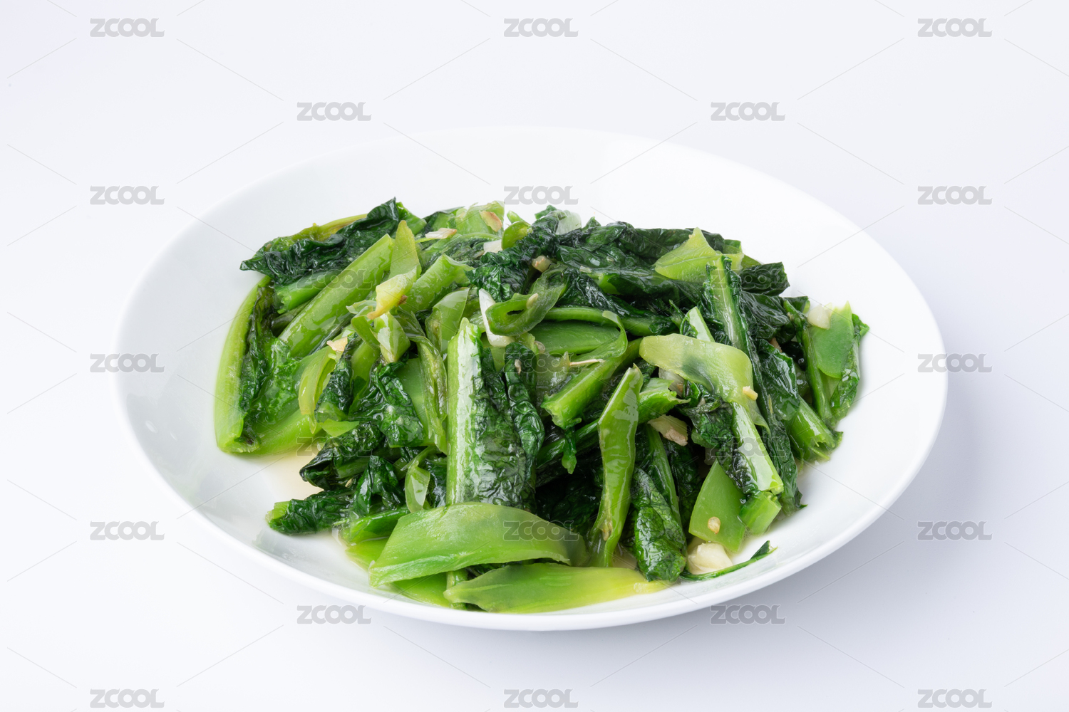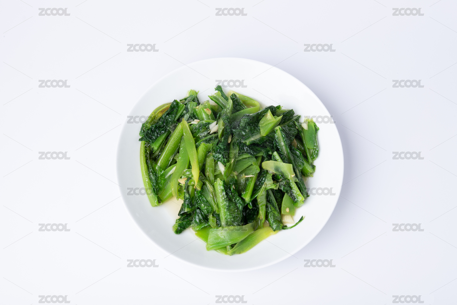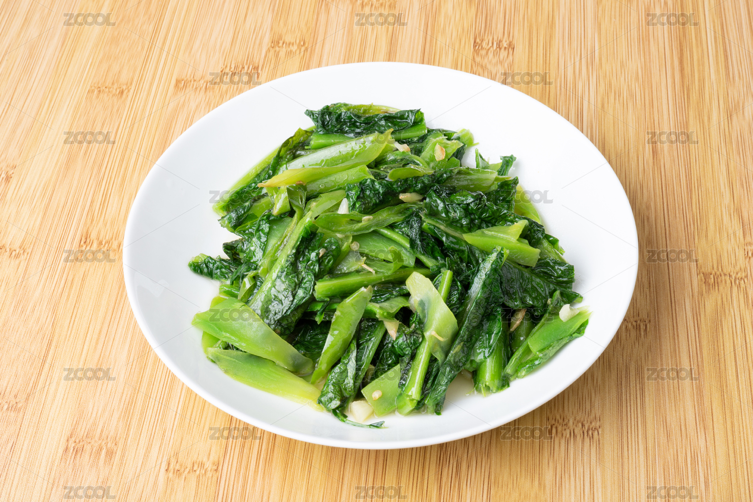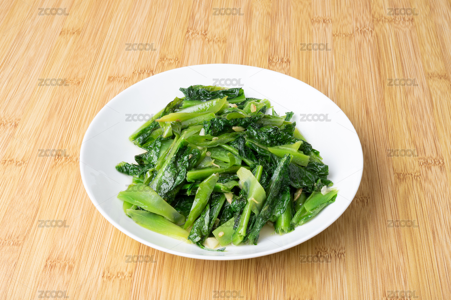 盤子里的素炒萵筍葉