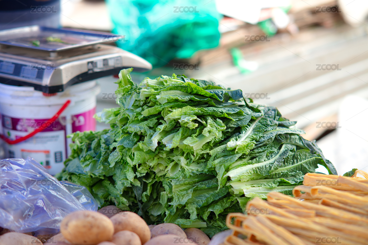 菜攤子上的新鮮萵筍葉