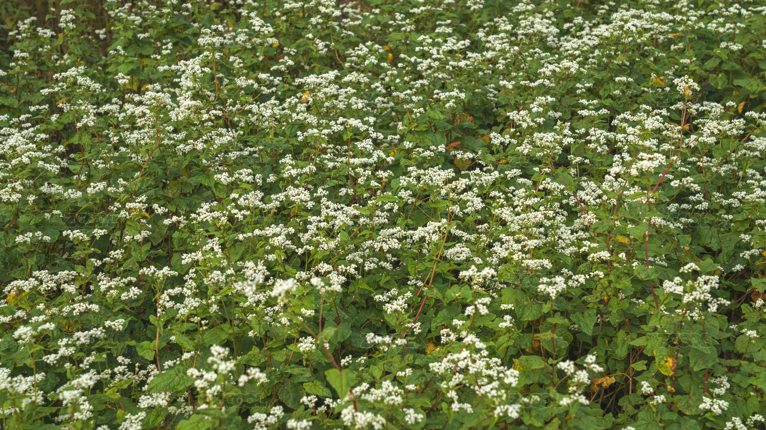 俯拍盛開的白色蕎麥花
