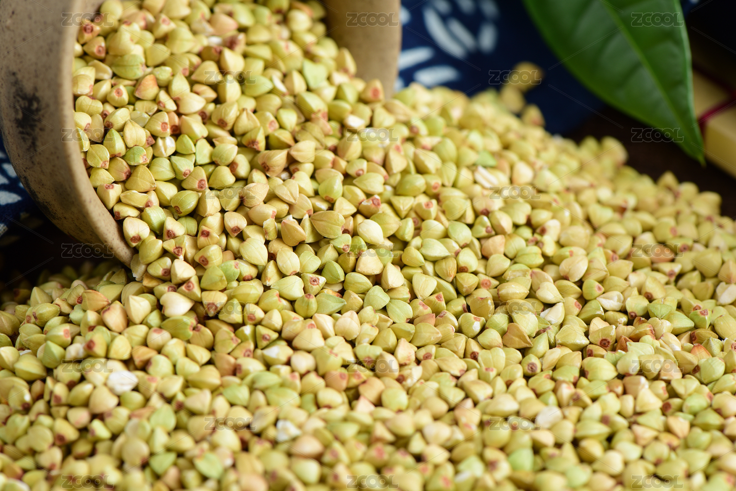復(fù)古中國(guó)風(fēng)格背景上從碗里倒出來的大堆蕎麥米特寫圖片