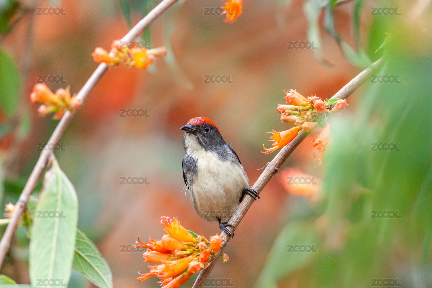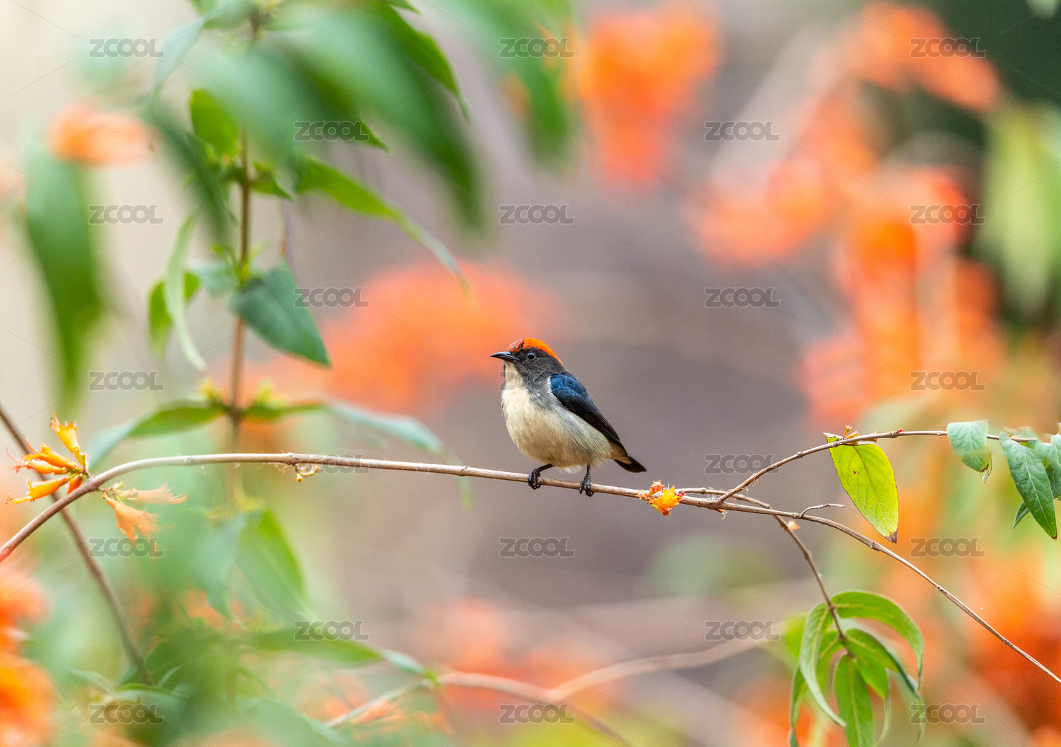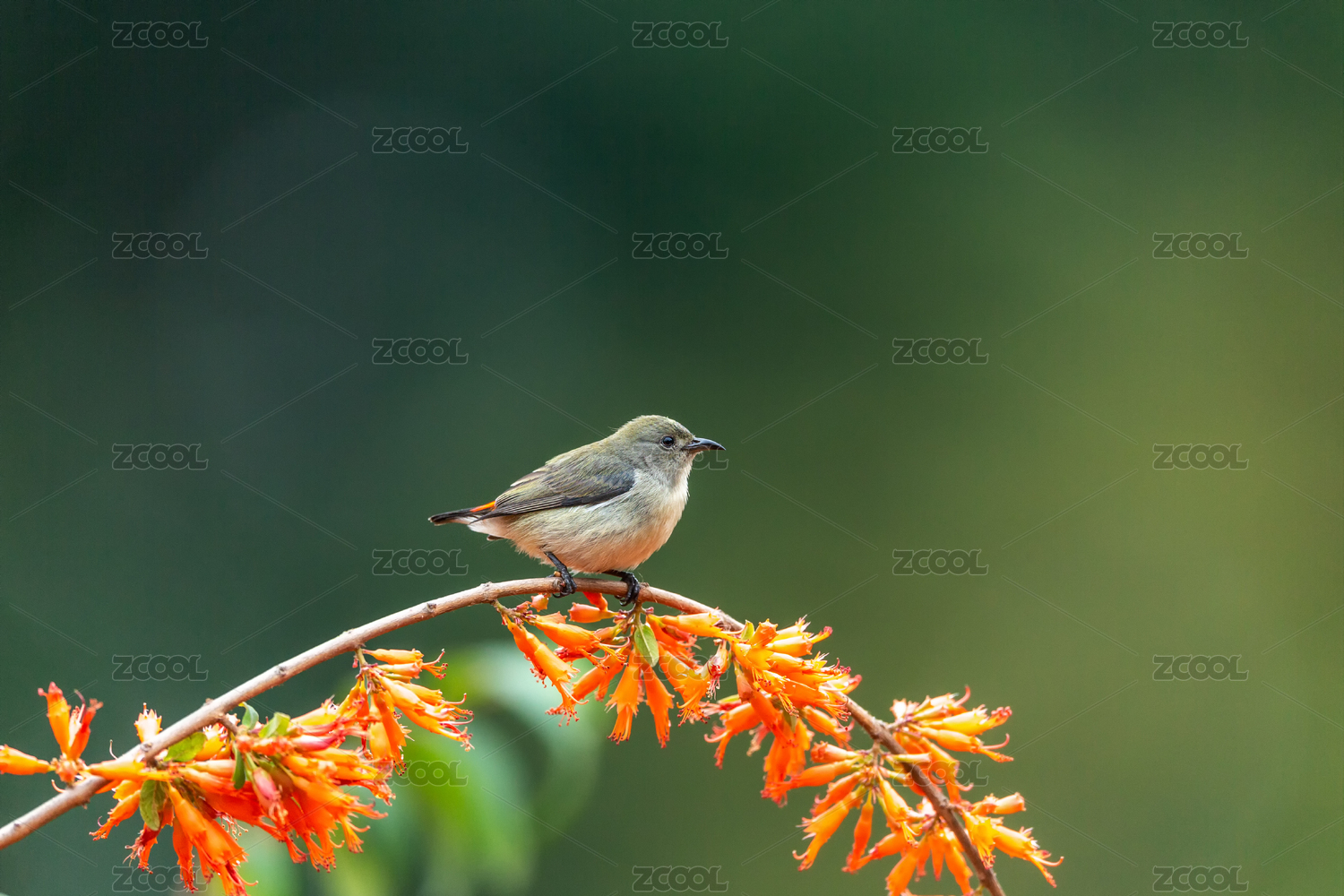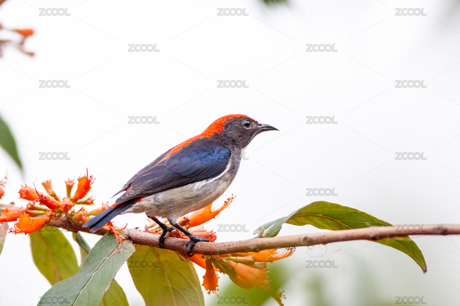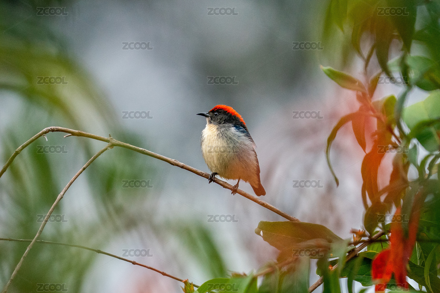 朱背啄花鳥穿梭于蝦米花樹從吸食花蜜