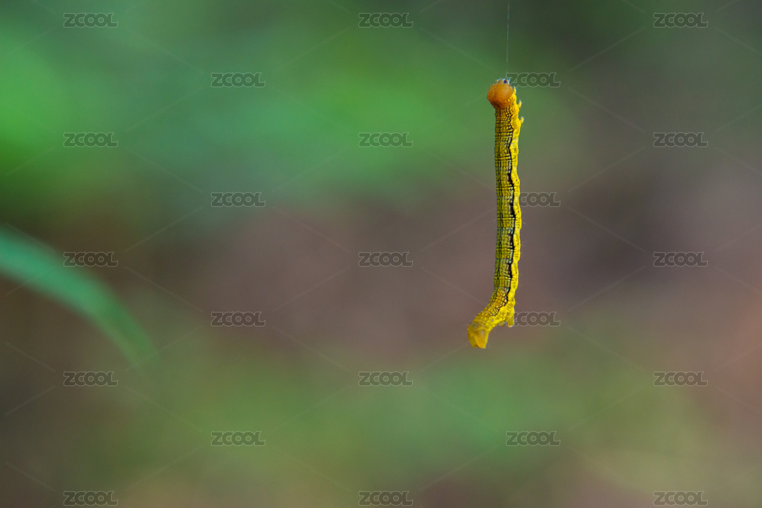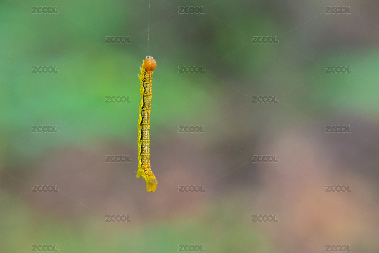 一根絲懸在空中的黃色尺蠖 鱗翅目尺蛾科