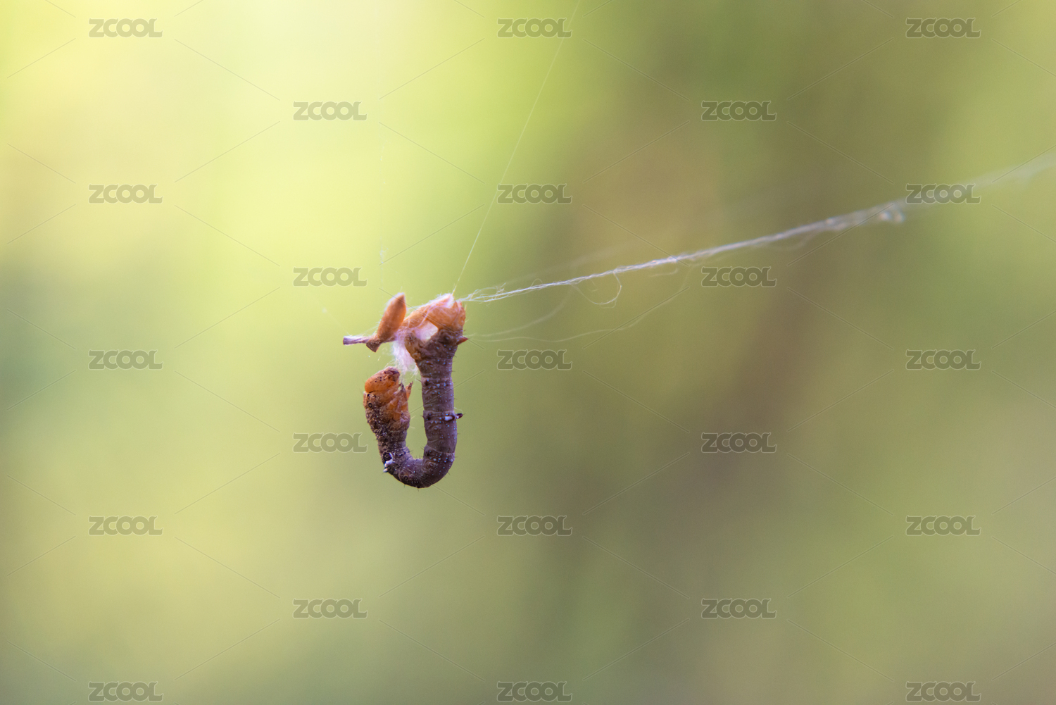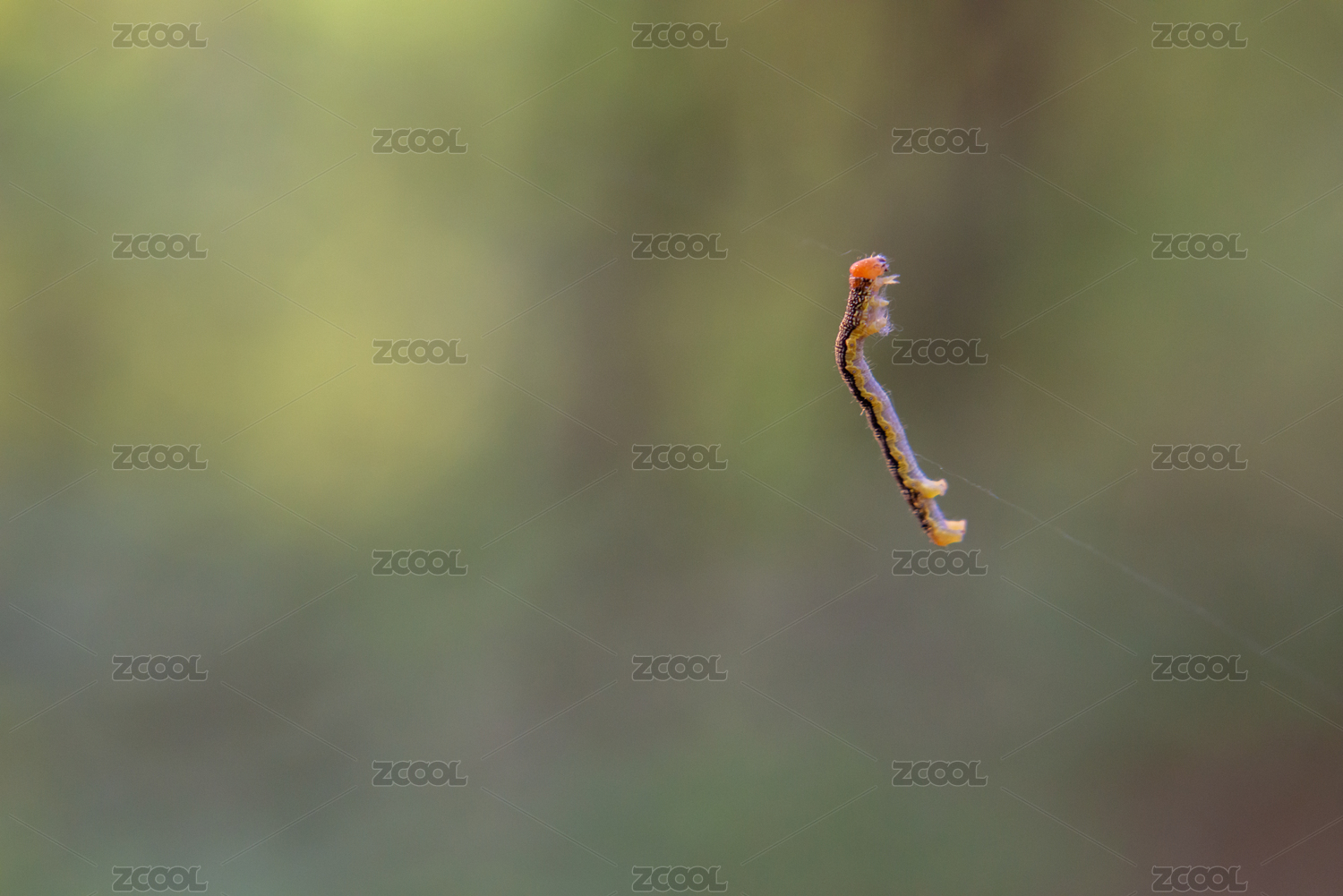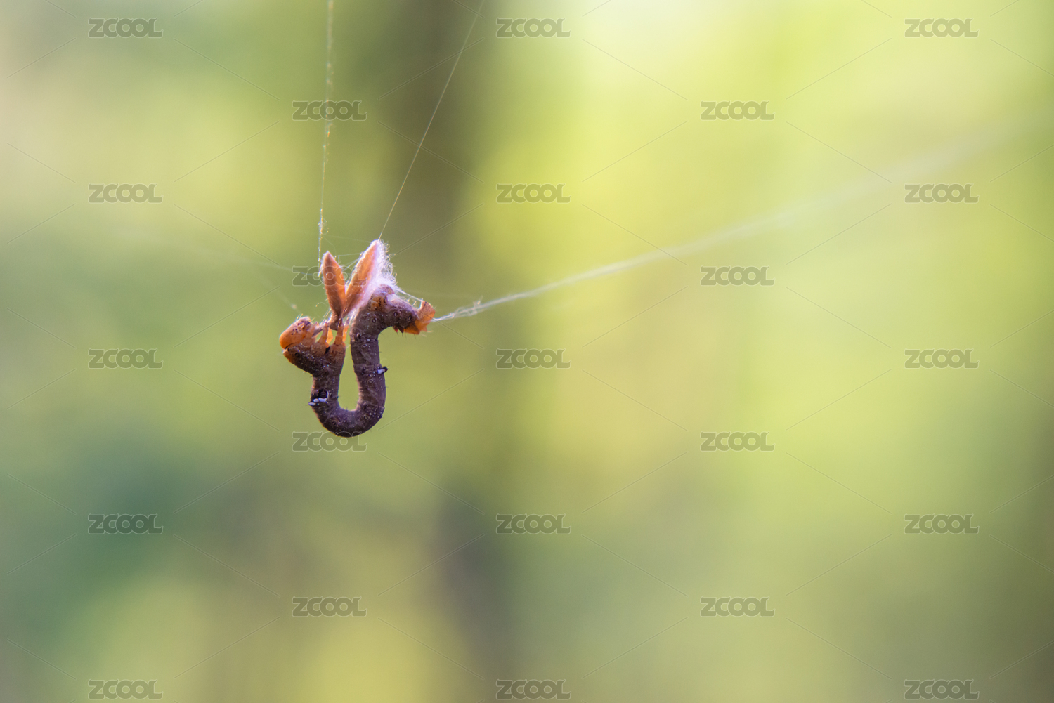 一根絲懸在空中的尺蠖 鱗翅目尺蛾科