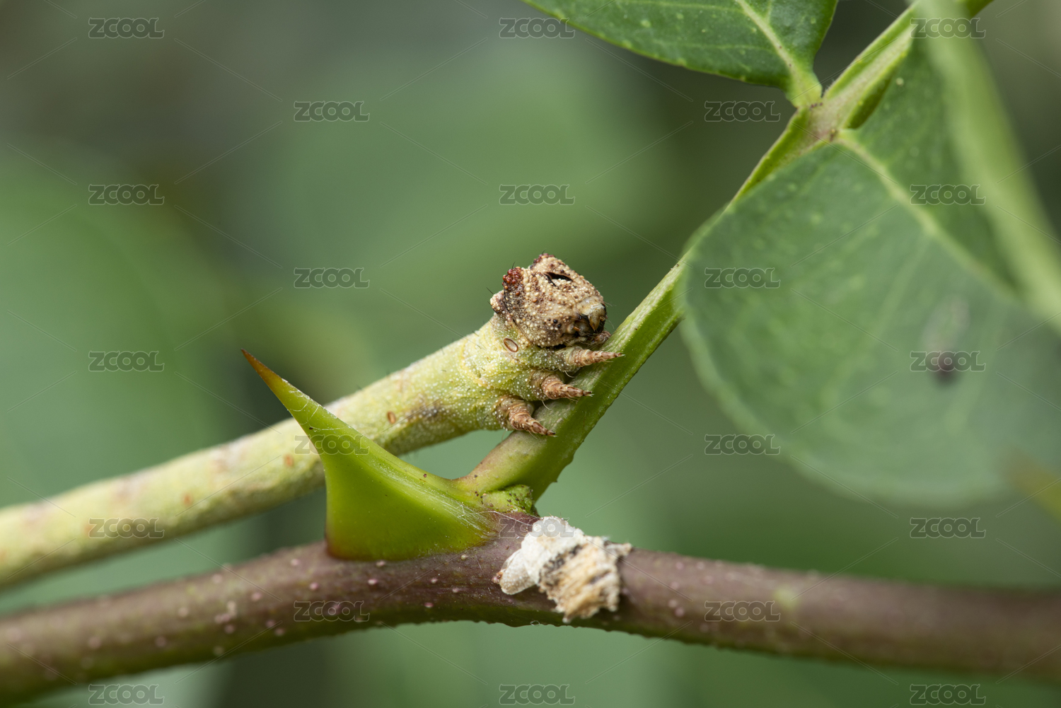 一只擬態(tài)的尺蠖棲息在野生植物上