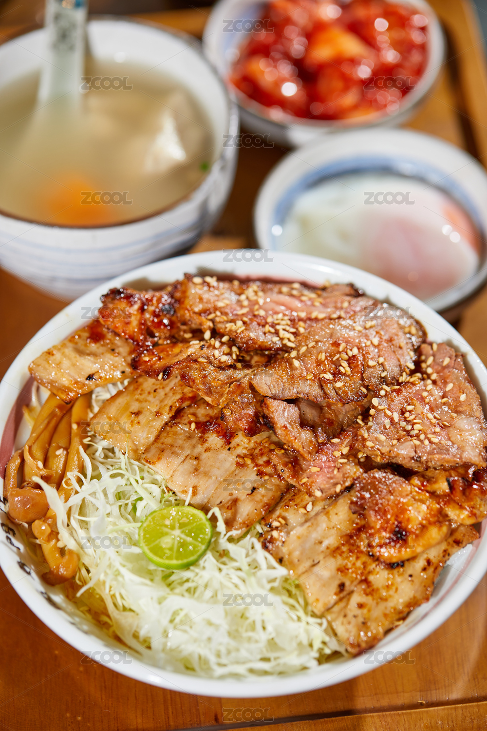 放在碗里的烤豬肉蓋飯丼飯